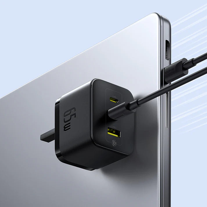 • قوة شحن 65 واط تقريبًا 😍: يشحن اللابتوب، التابلت، الجوال… بسرعة وبدون تأخير. baseus-my.myshopify.com+2baseuscolombo.lk+2