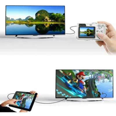 بدال لا تروحين تشترين "واير طويل" يديد وغالي عشان يركب على كاميرتج، بس ركبي هالوصلة الصغيرة (Adapter) على واير الـ HDMI اللي أصلاً موجود عندج بالبيت، وشبكي جهازج عالتلفزيون سيدا!