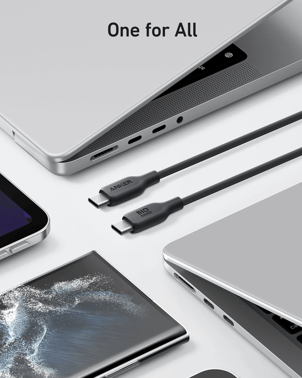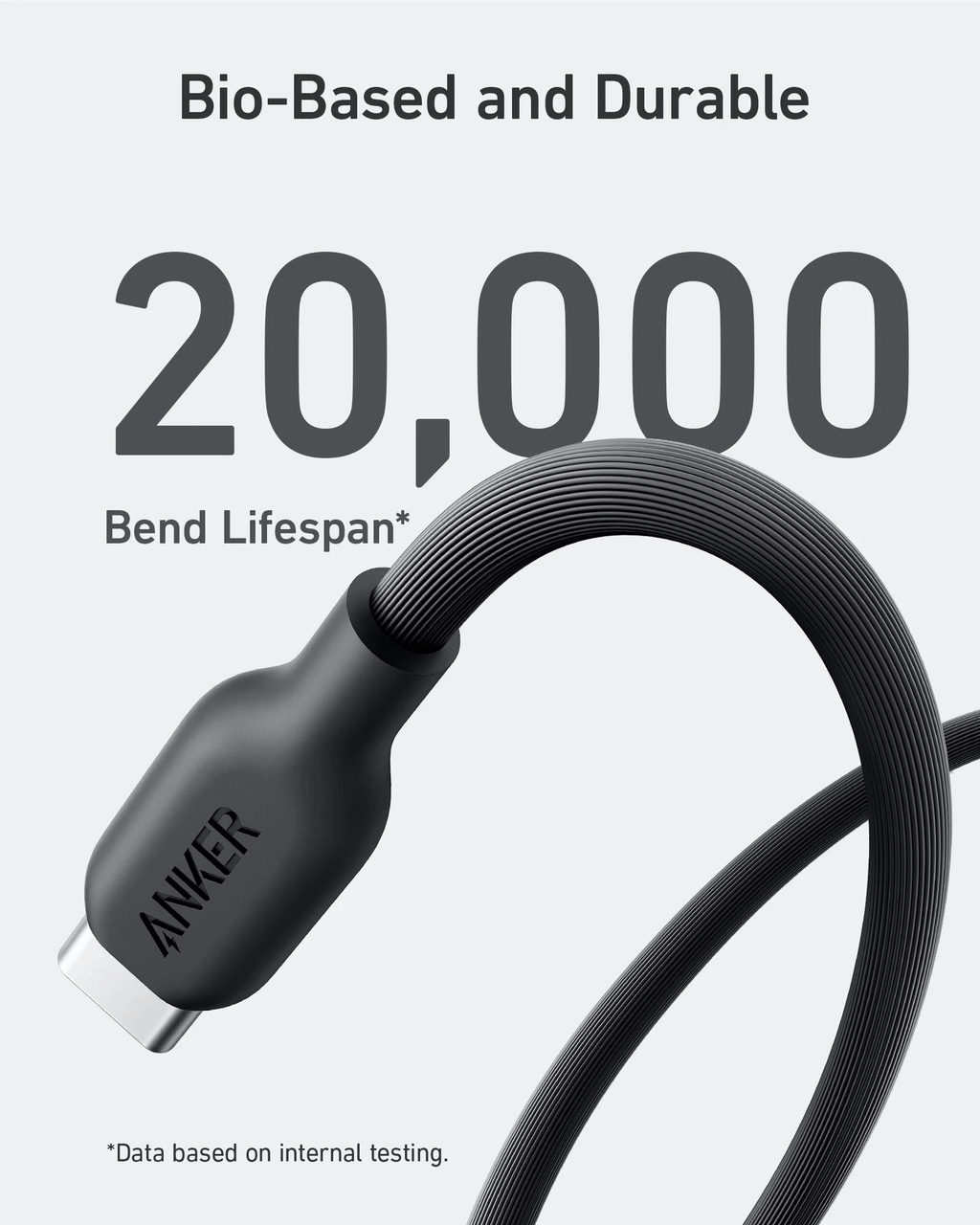 Anker 544 USB-C to USB-C Cable 140W (Bio-Based) - 1.8m - Black [D] - سلك شحن - انكر - تايب سي الى تايب سي - طول 180 سم - كفالة 18 شهر