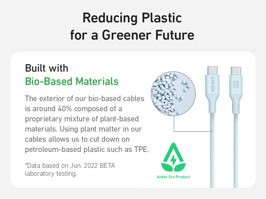 Anker 544 USB-C to USB-C Cable 140W (Bio-Based) - 1.8m - Blue [D] - سلك شحن - انكر - تايب سي الى تايب سي - طول 180 سم - قوة 140 واط - كفالة 18 شهر