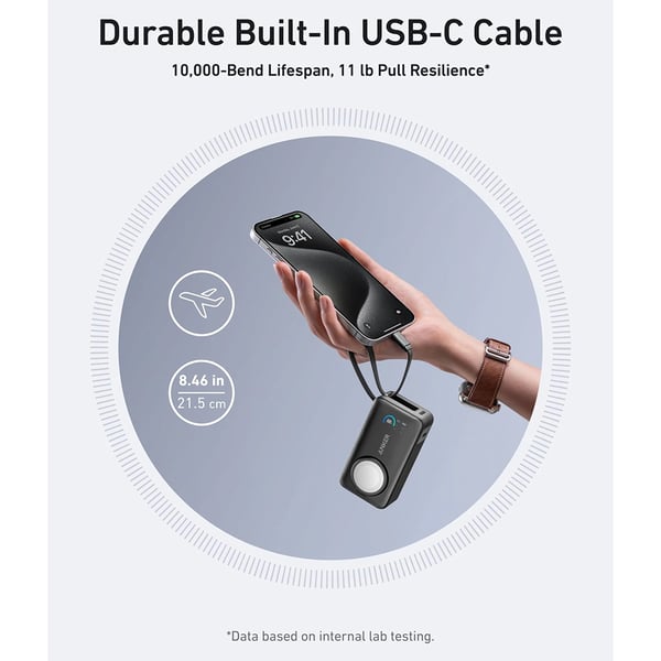 Anker MagGo Power Bank 10000mAh Black [D] - بطارية متنقلة - انكر - سعة 10 آلف ملي امبير - قوة 35 واط - مع سلك شحن تايب سي + شاحن للساعه - كفالة 18 شهر