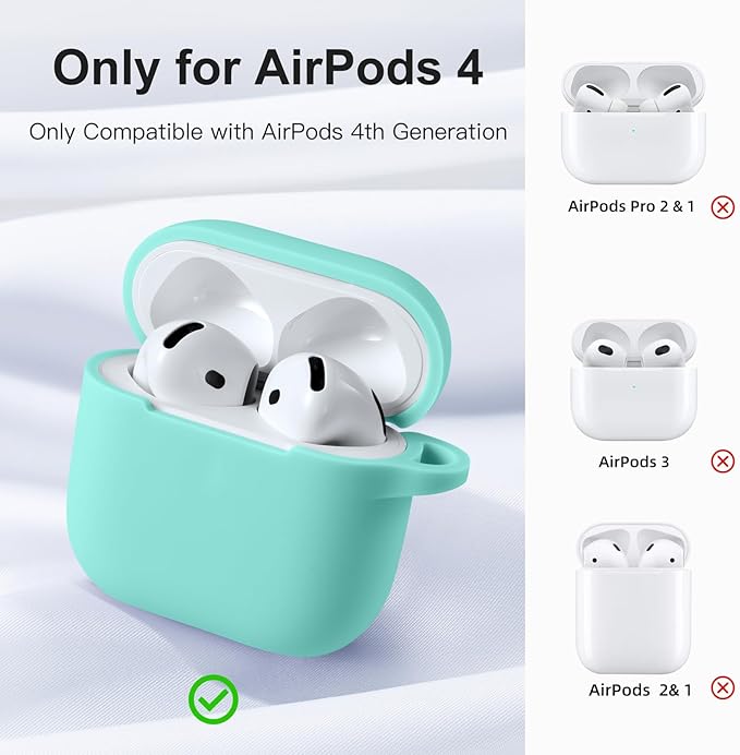 Clip AirPods 4 - 2024 Silicon Case - Mint Green - كفر حماية - سماعة ابل ايربودز 4 - 2024
