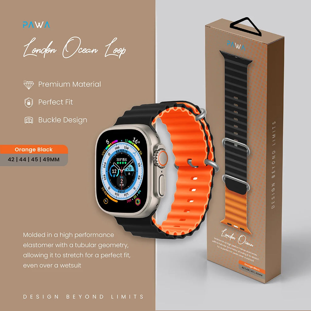PAWA - Lagos Premium Soft Silicon Straps - Black/Orange - سير ساعه أبل واتش