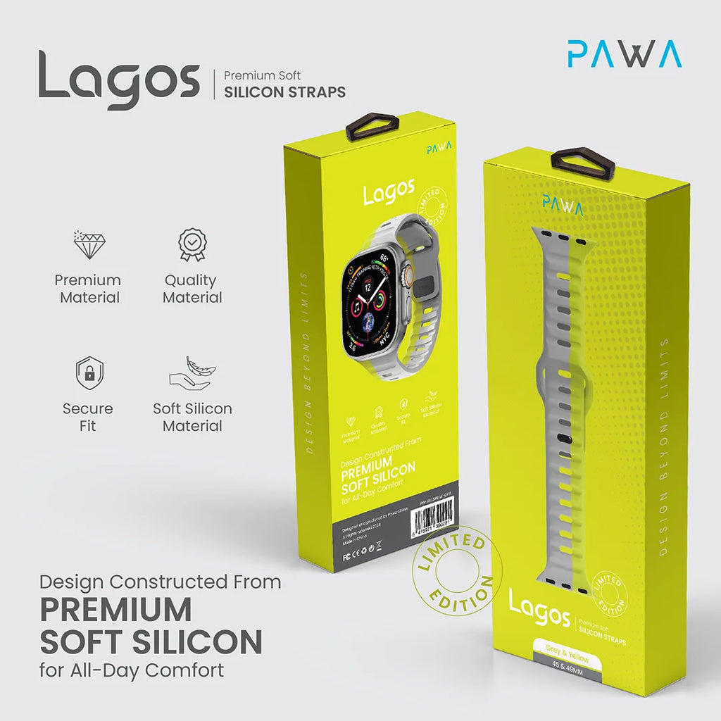 PAWA - Lagos Premium Soft Silicon Straps - Grey & Yellow - سير ساعه أبل واتش