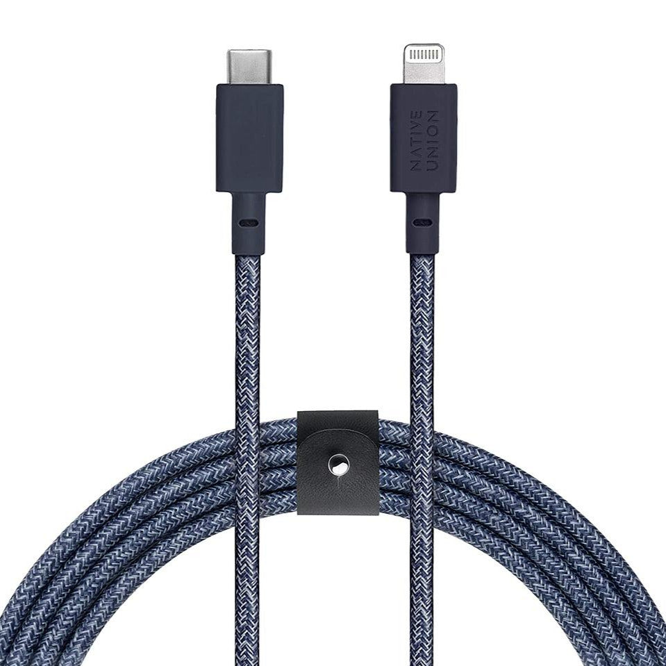 Native Union Belt Cable USB-C to Lightning 3M - Indigo - USB-C [V] - سلك شحن ايفون - نيتف يونيون - مقاوم للقطع - 3 متر - كفالة 5 سنوات