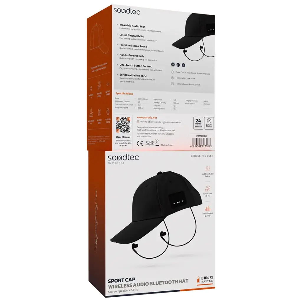 - الكبوس فيه سماعات بلوتوث رقيقة مدمجة عالجانبين.