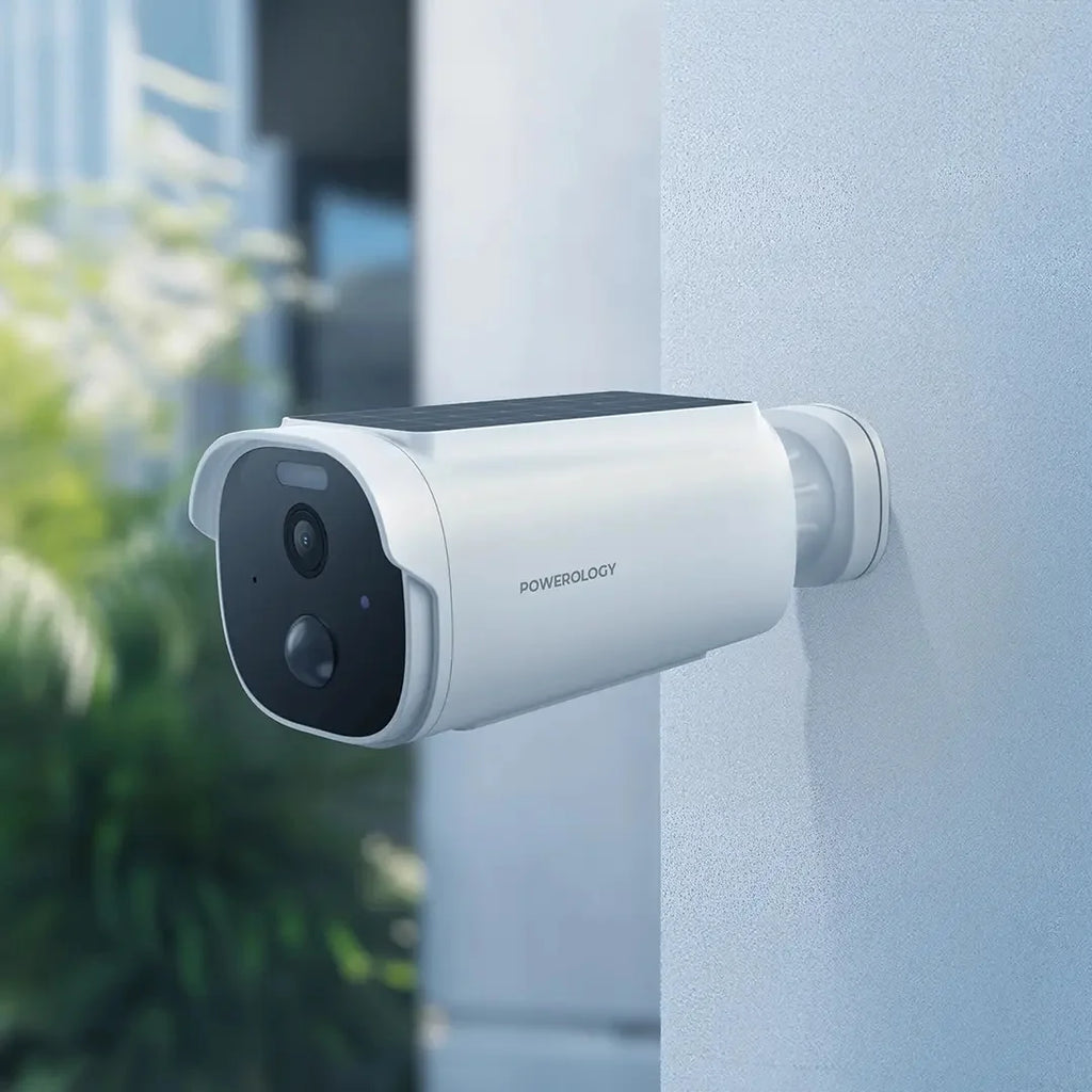 Powerology 3MP 2K Solar Powered Smart Security Camera with Night Vision - كاميرا خارجيه - باورولوجي - مع ميزة الرؤية الليلية تعمل بالطاقة الشمسية - دقة 2 كى - كفالة 12 شهر