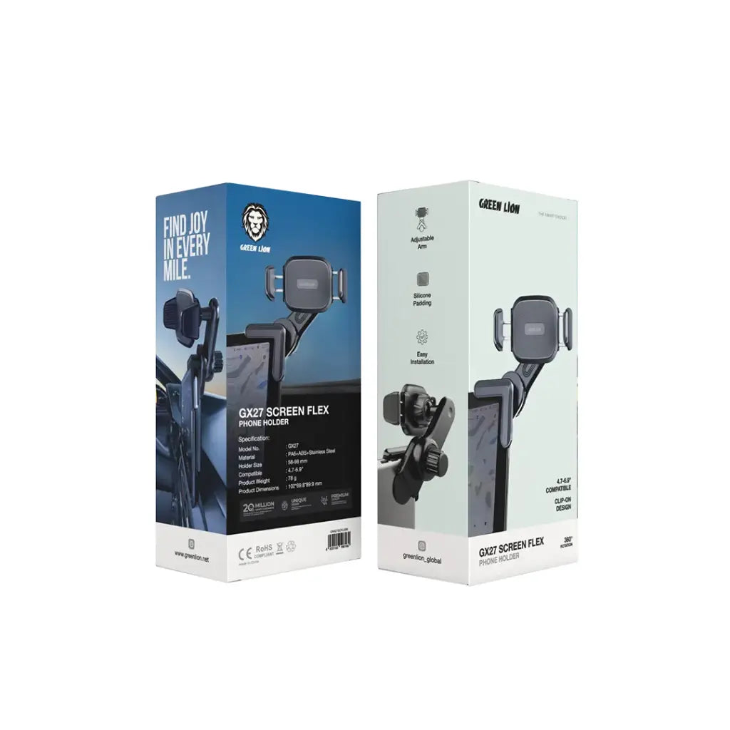 Green Lion GX27 Screen Flex Phone Holder - Black - ستاند سيارة - مناسب لجميع انواع الاجهزة - متوافق مع شاشة السيارة