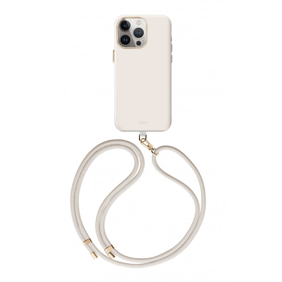 Uniq Coehl Creme Smooth Liquid Silicone MagSafe Case with Adjustable Crossbody Strap for iPhone 15/15 Plus/15 Pro/15 Pro MAX - Ivory - كفر حماية عالية - مع علاق - ماغ سيف - يونيك