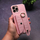كفر 5 في 1: كفر جلد + مكان للبطاقات والفلوس + مسكة شريطة + ميدالية + ستاند جانبي