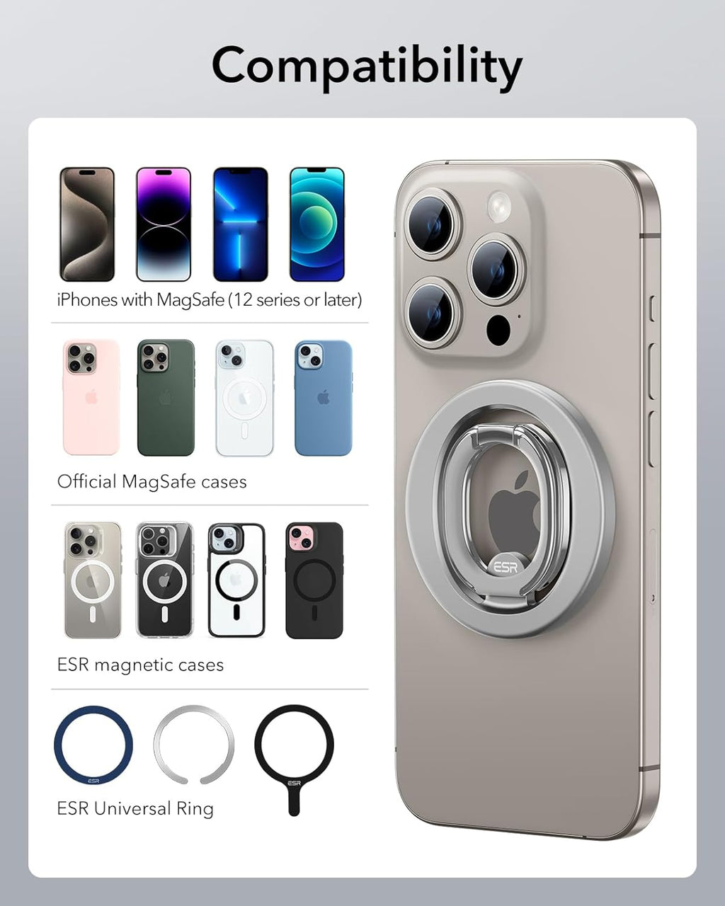 ESR HaloLock Ring Stand - Natural Titanium [V] - مسكة خاتم - مغناطيس وستاند - خاصية الماغ سيف لاجهزة الايفون 12 و 13 و 14 و 15