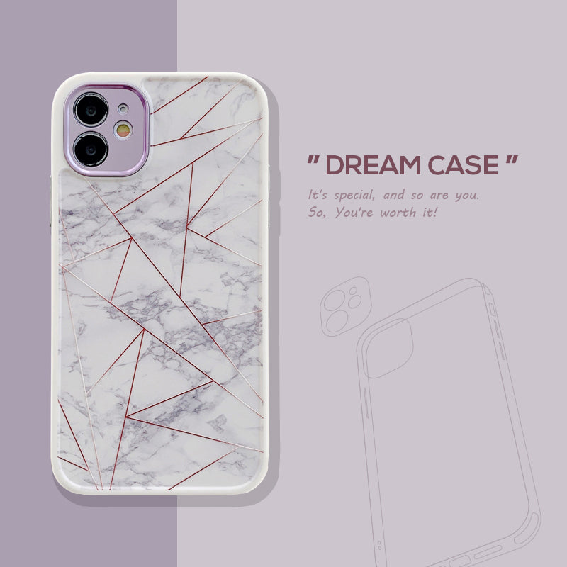 Off-White Marble Case with Structure Purple lines and Camera Lens Protection