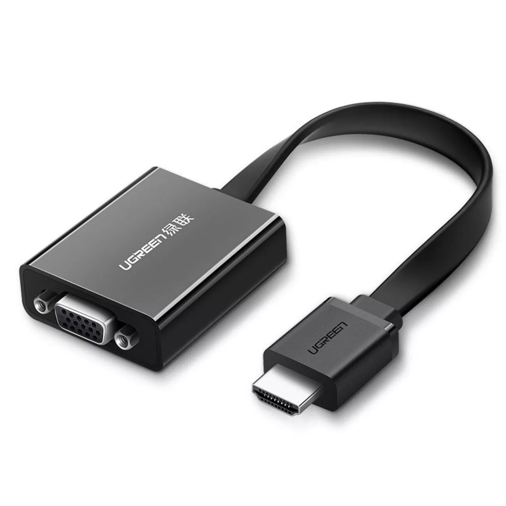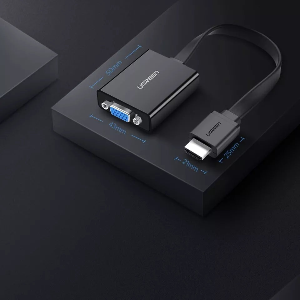 Ugreen Adapter HDMI - VGA Micro USB/Audio 3,5 MM Mini Jack Black - وصلة تلفزيون واللاب توب - منفذ صوت + منفذ مايكرو يو اس بي