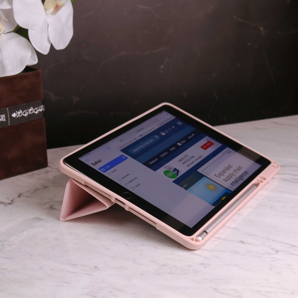 Toby Series Case for iPad With Apple Pencil Holder & Auto Sleep Wake - Pink - كفر ايباد حماية عالية - مع مكان للقلم - ووضعيتين للاستاند - مغناطيس