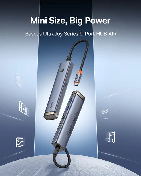 Baseus UltraJoy 6-Port HUB AIR – Space Grey [D] - وصلة تايب سي - 6 في 1 - لاجهزة الايباد برو والماك بوك - متعددة الاستخدام - كفالة 12 شهر