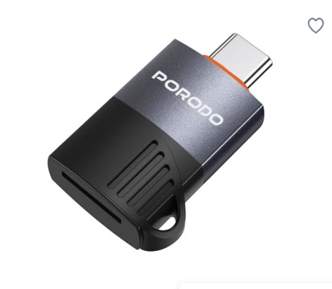 Porodo USB-C | OTG TF Card Reader-Black [O] - وصلة تايب سي - لنقل البيانات - من الميموري كارد - بورودو