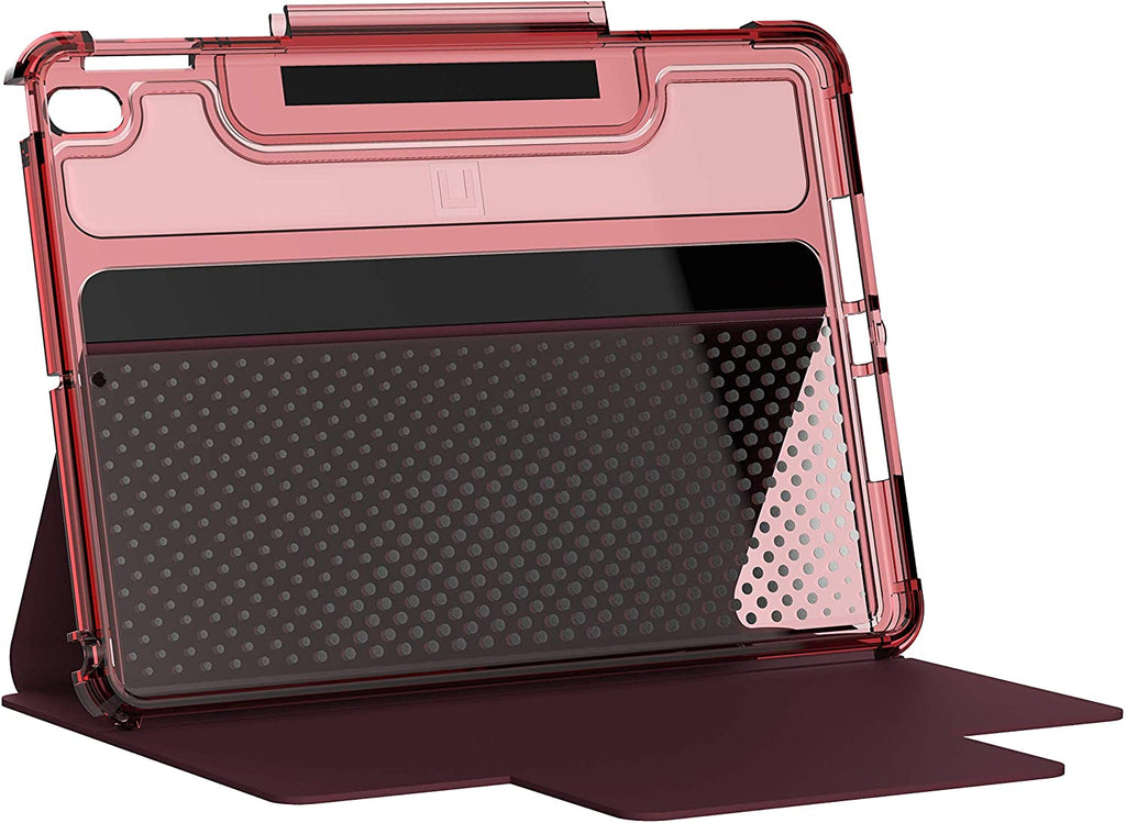 الغطا الأمامي مو بس حماية للشاشة، اهوا ذكي (يشغل الجهاز لما تبطلينه ويطفيه لما تسكرينه). والاهم إنه يصير "ستاند" يثبت الآيباد عشان تتابعين مسلسلاتج أو تحضرين اجتماعاتج ومكالمات الفيديو وانتي مرتاحة.