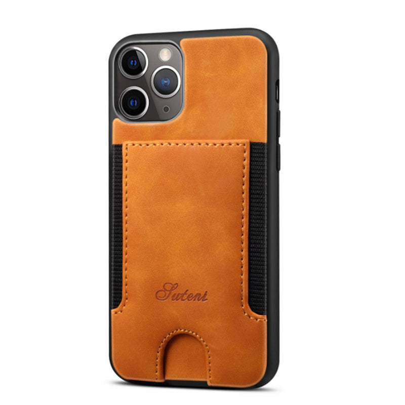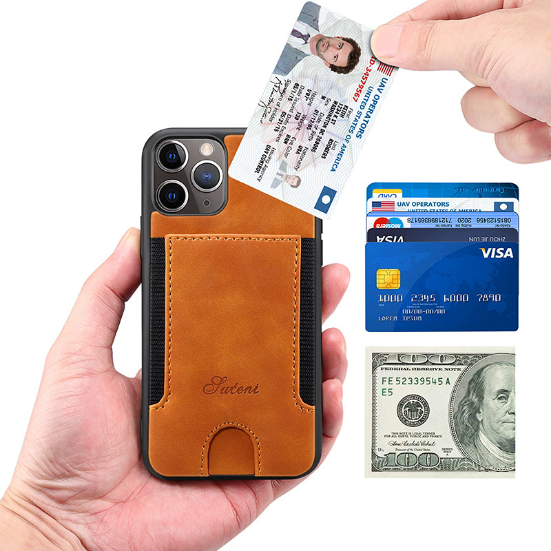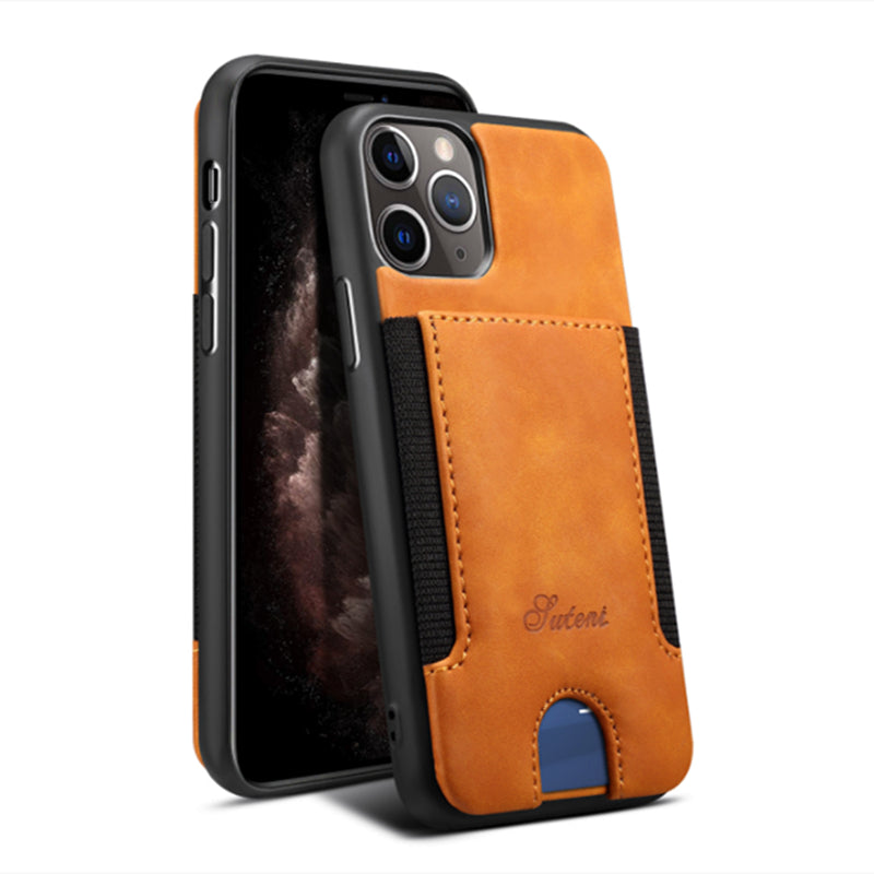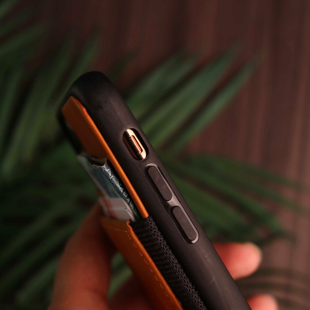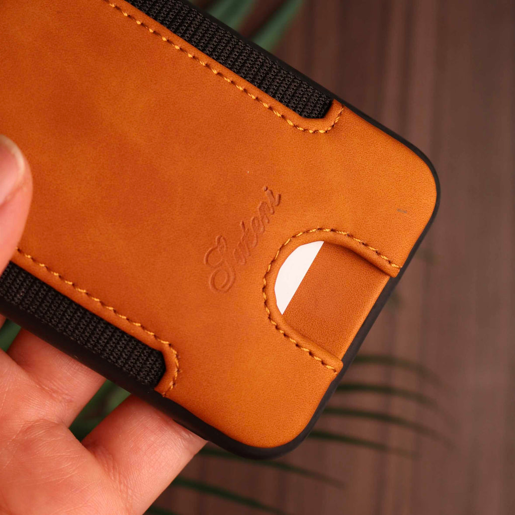 Brown Leather Case with Back Card Slots - كفر جلد مع محفظة للبطاقات بالخلف