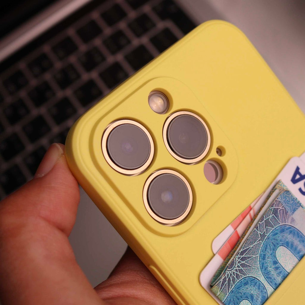 Yellow Soft Silicone Wallet Card Phone Case - كفر مع محفظة للبطاقات بالخلف