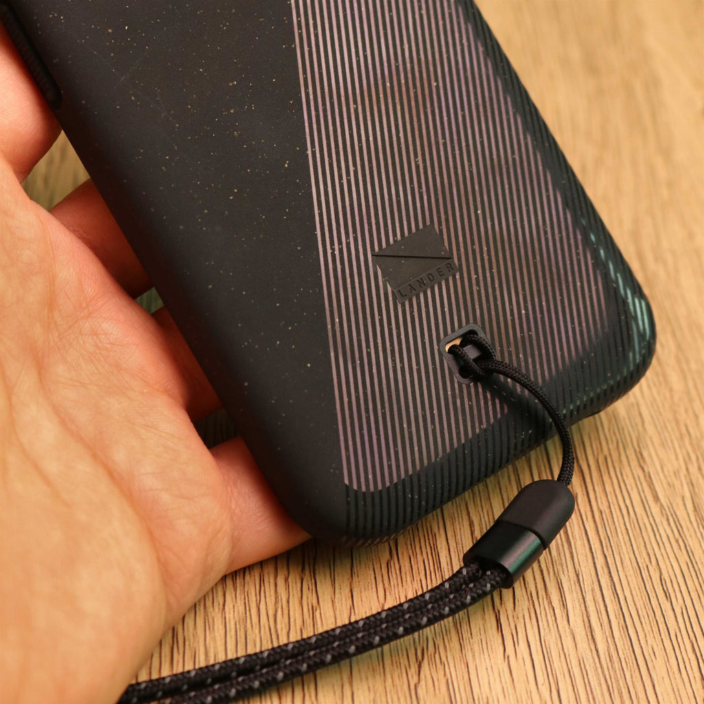يحتوي على خيط علاقة، عشان تكون مرتاحين وانتوا تستخدمون الجهاز او تعلقونه ومايطيح من ايدكم.
