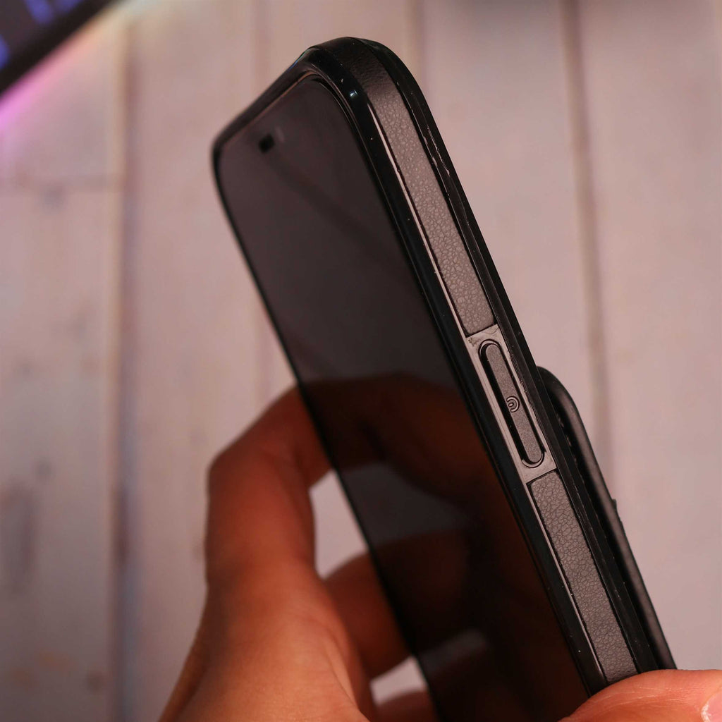 Black Leather Case with Wallet Card Slot - كفر جلد مع محفظة للبطاقات والنقود