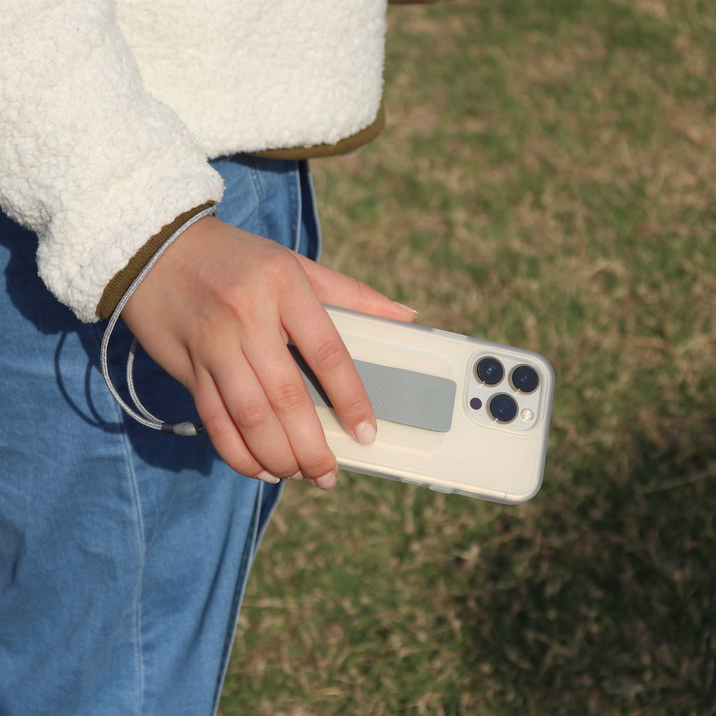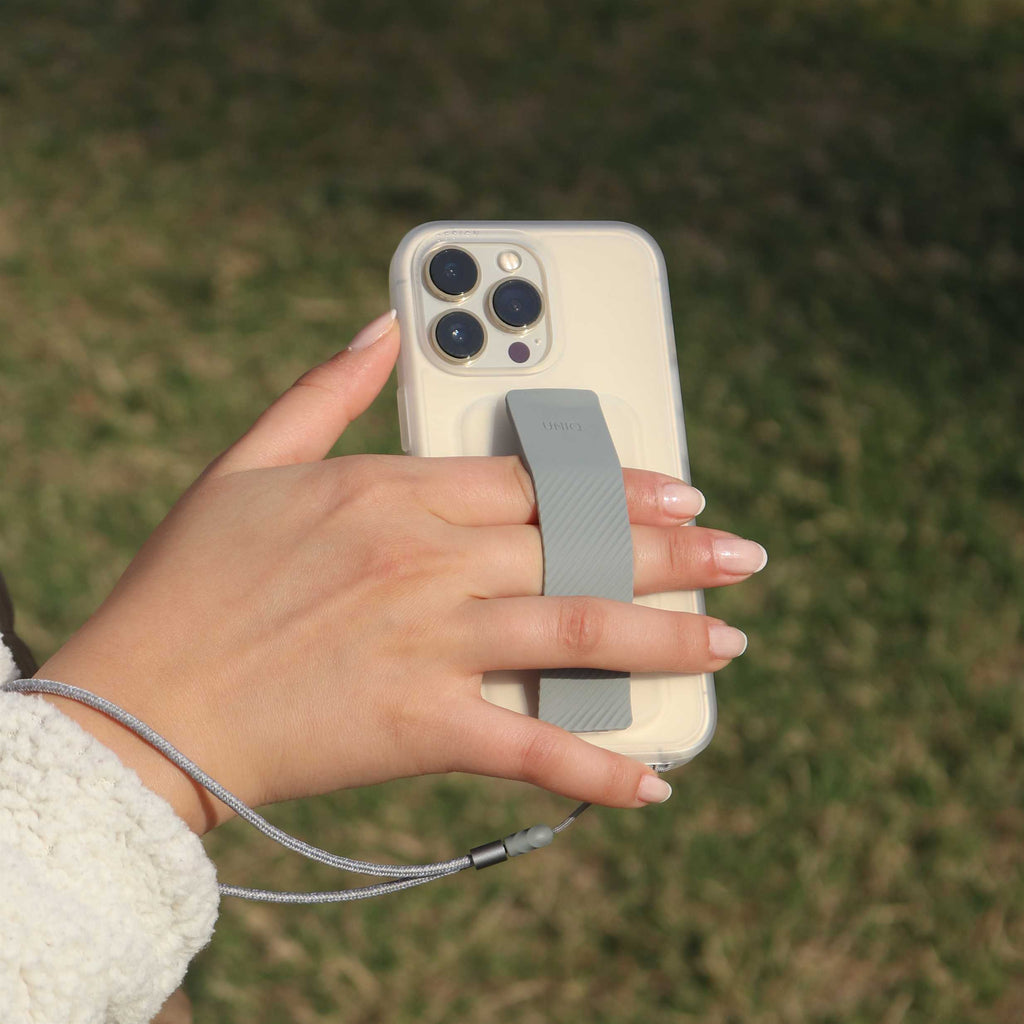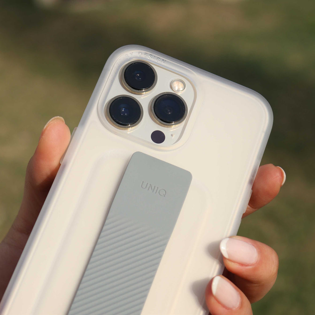 Uniq Hybrid Heldro Mount Series - Dove Matte Clear - كفر حماية عالية مع مغناطيس للسيارة ومسكة شريطة وخيط علاقة - يونيك