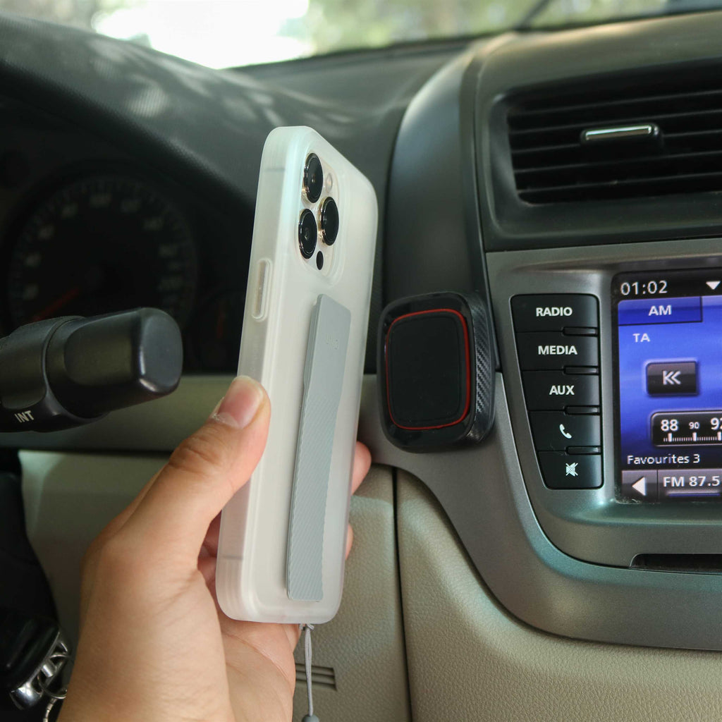 ​الكفر يدعم الشحن اللاسلي حتى مع مسكة الشريطة الموجودة عليه.