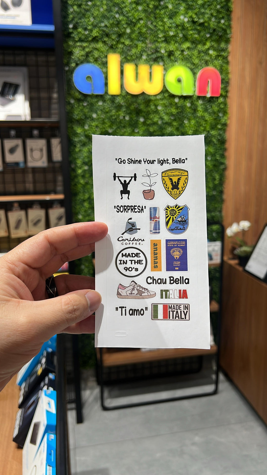 Noufa Stickers Only - ستيكرزات منفصلة - تصميم خاص من اختياركم - التصميم + البروفة + الطباعة - سيتم التواصل معكم لتحديد الكلمات والصور