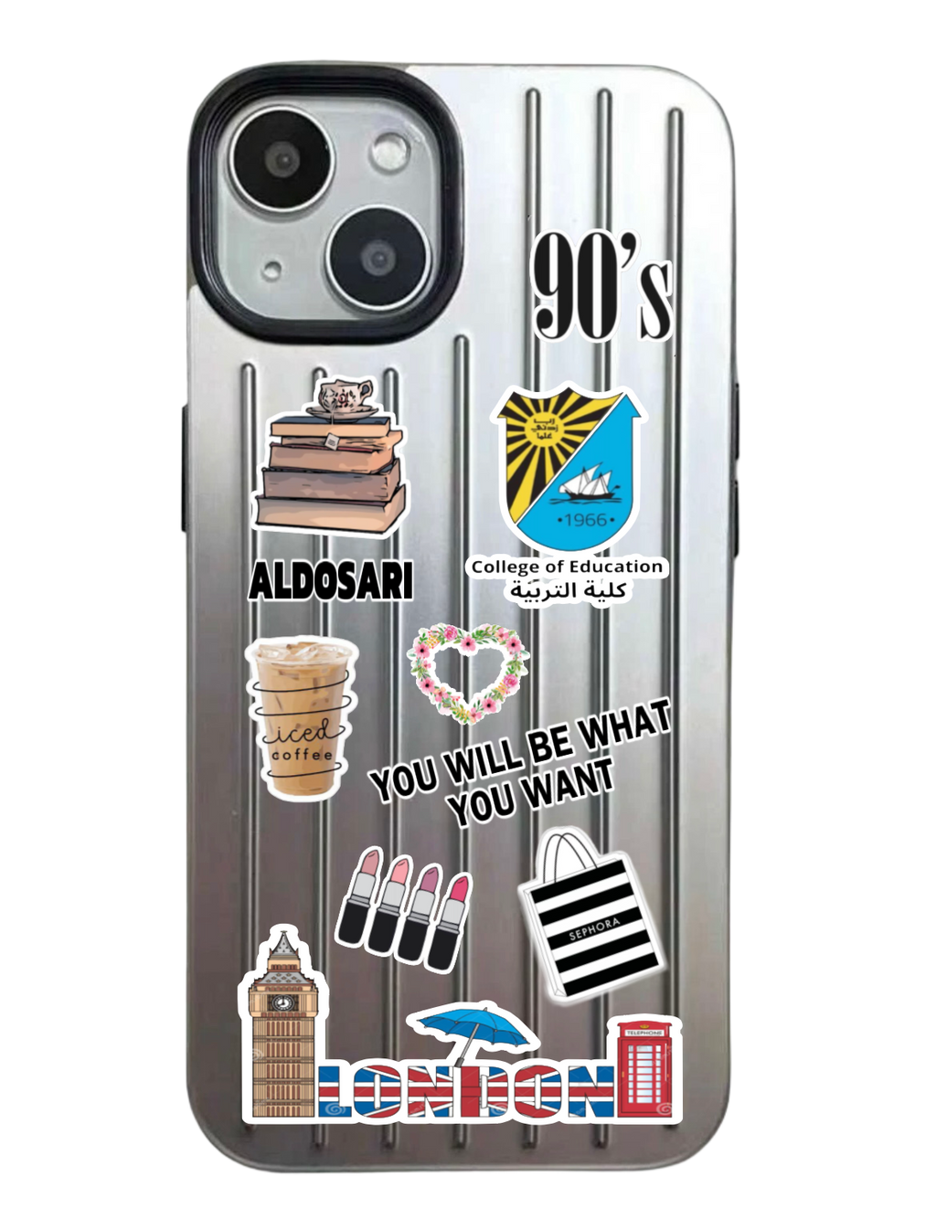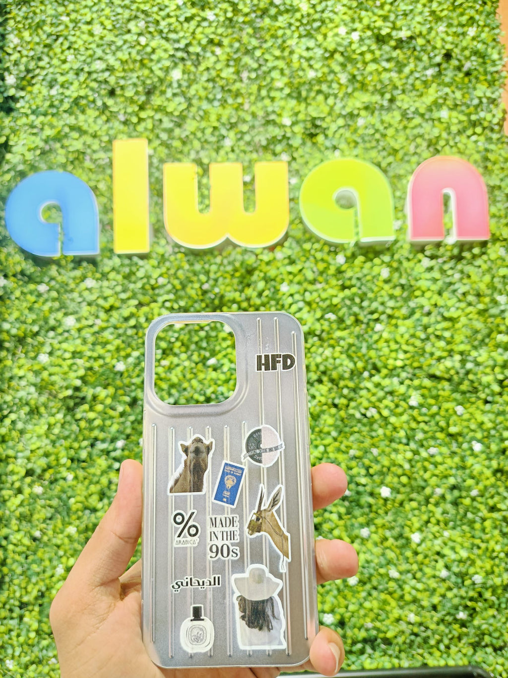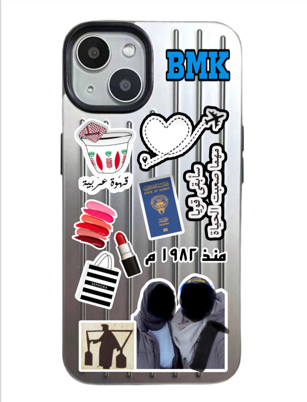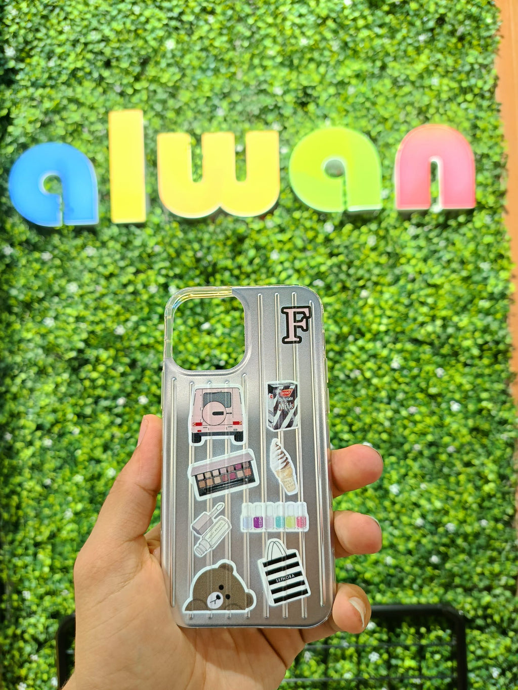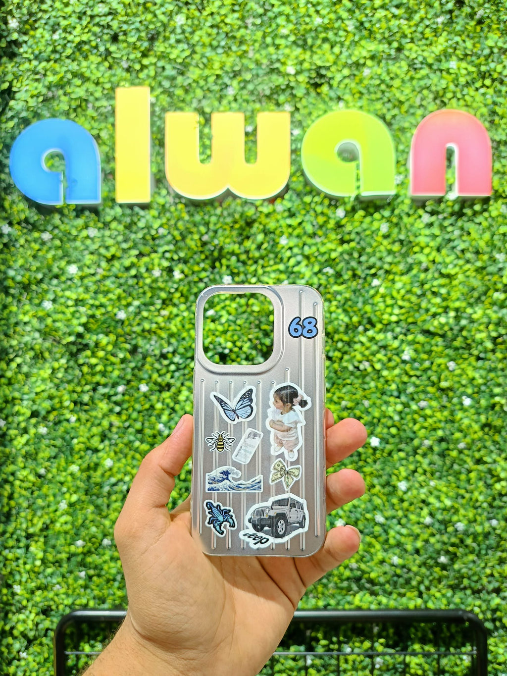 Noufa Silver Phone Case - كفر مع ستيكرز طباعة من اختياركم - الكفر + التصميم + البروفة + الطباعة - سيتم التواصل معكم لتحديد الكلمات والصور