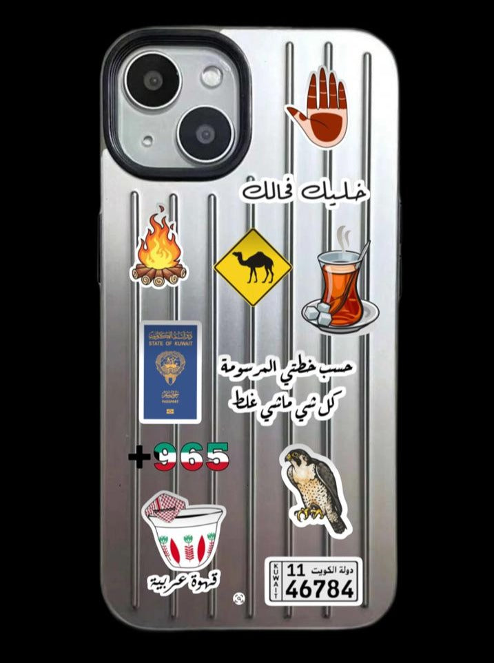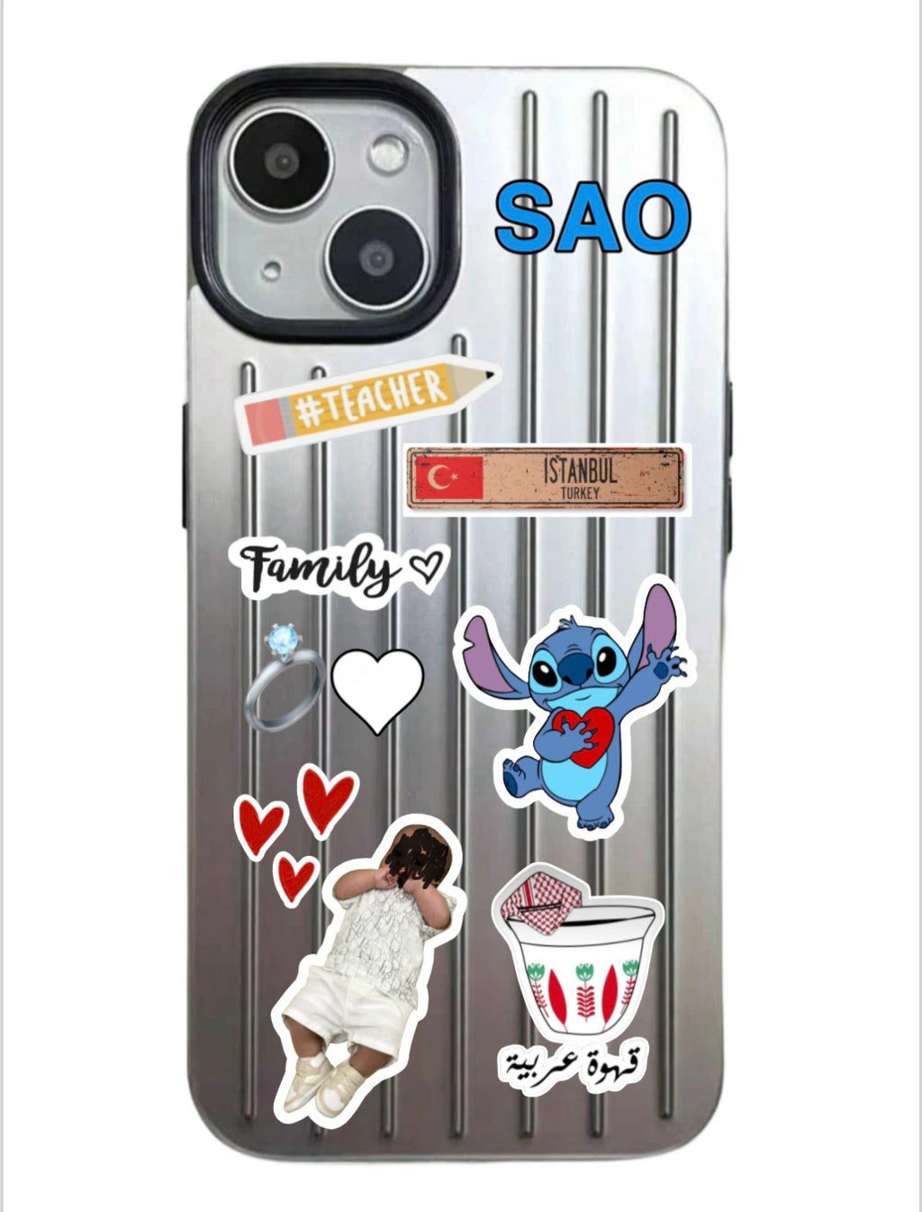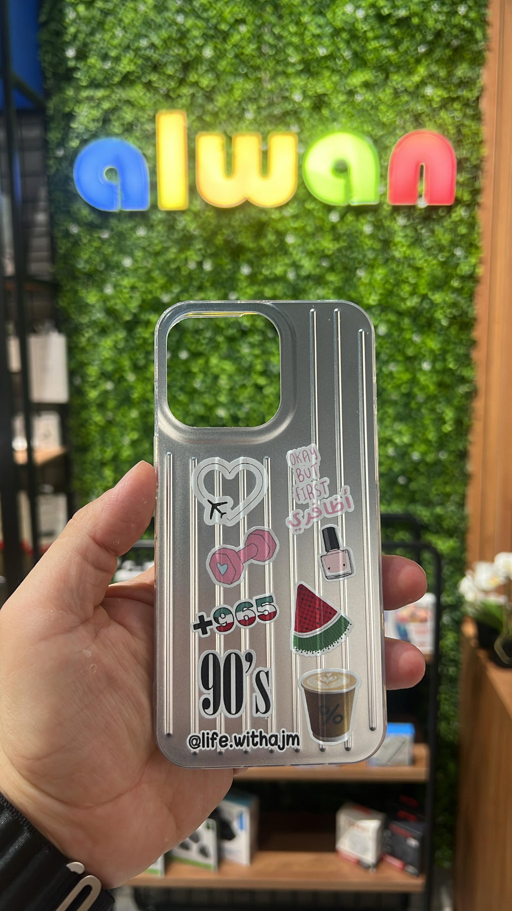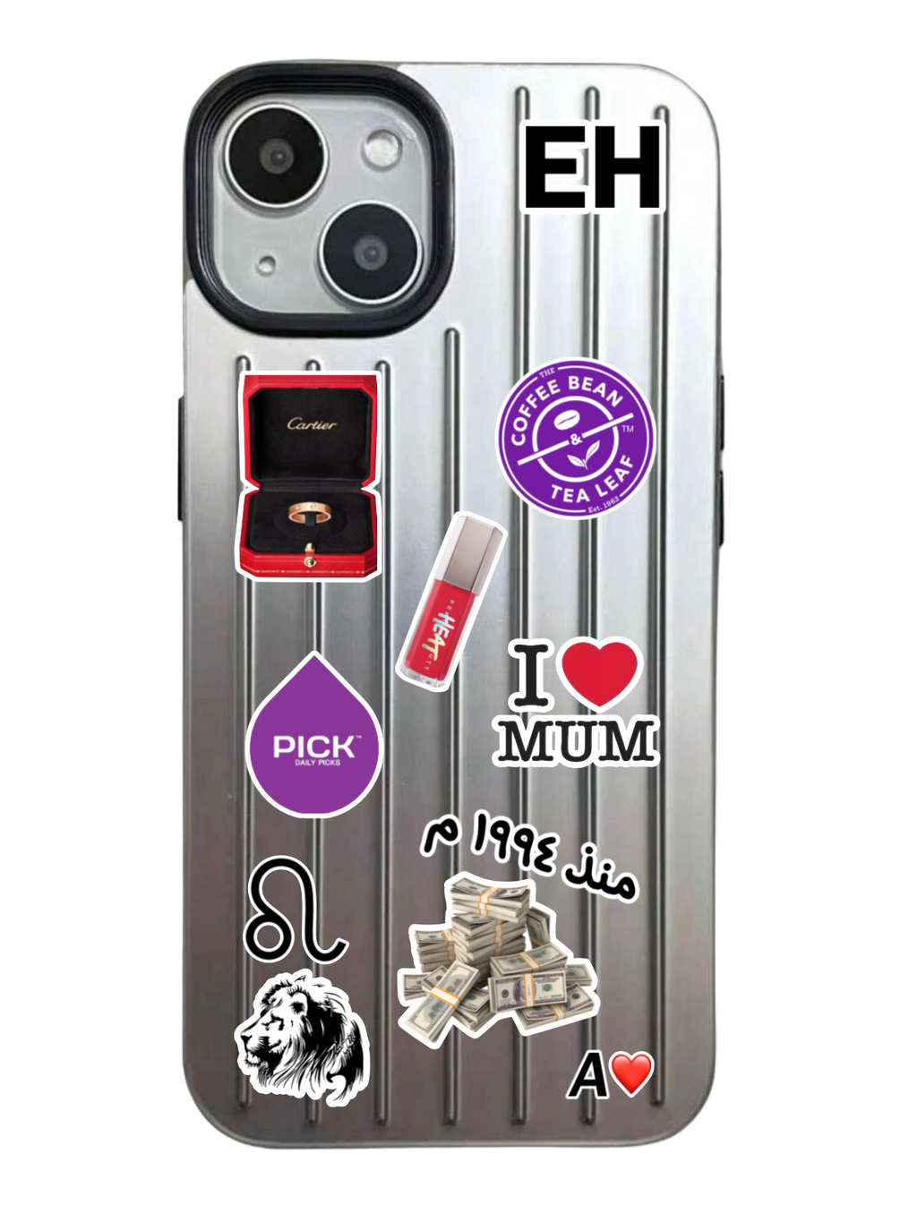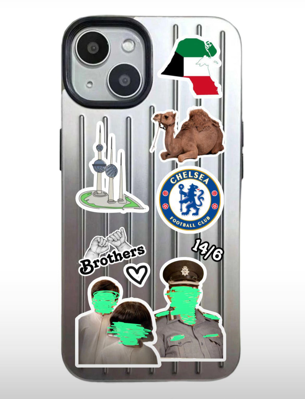 Noufa Silver Phone Case - كفر مع ستيكرز طباعة من اختياركم - الكفر + التصميم + البروفة + الطباعة - سيتم التواصل معكم لتحديد الكلمات والصور