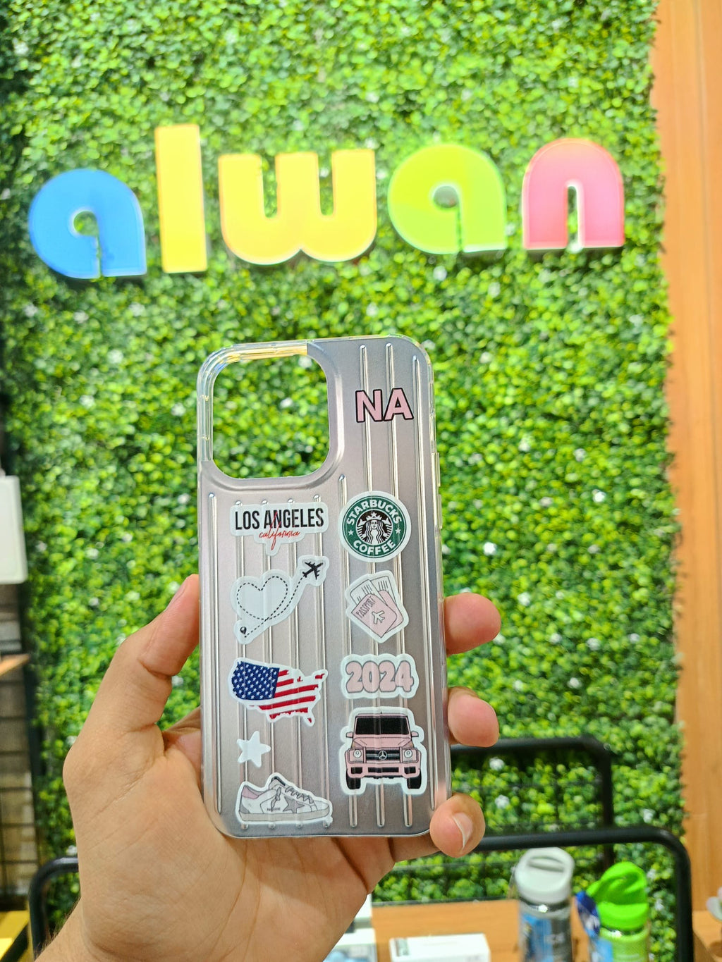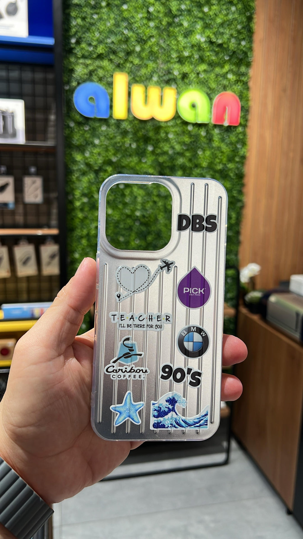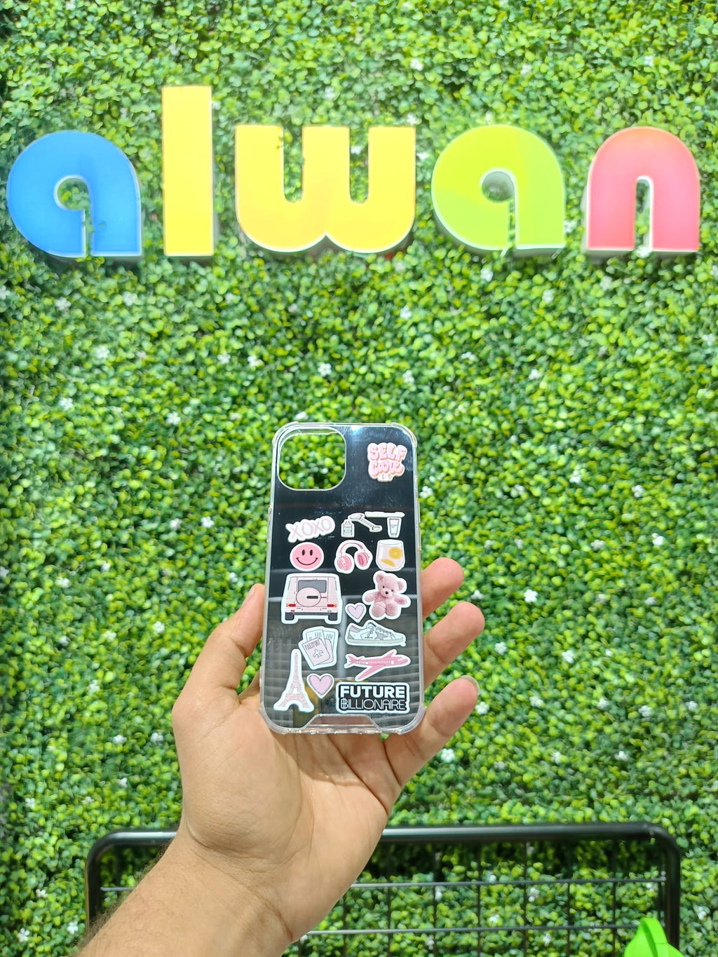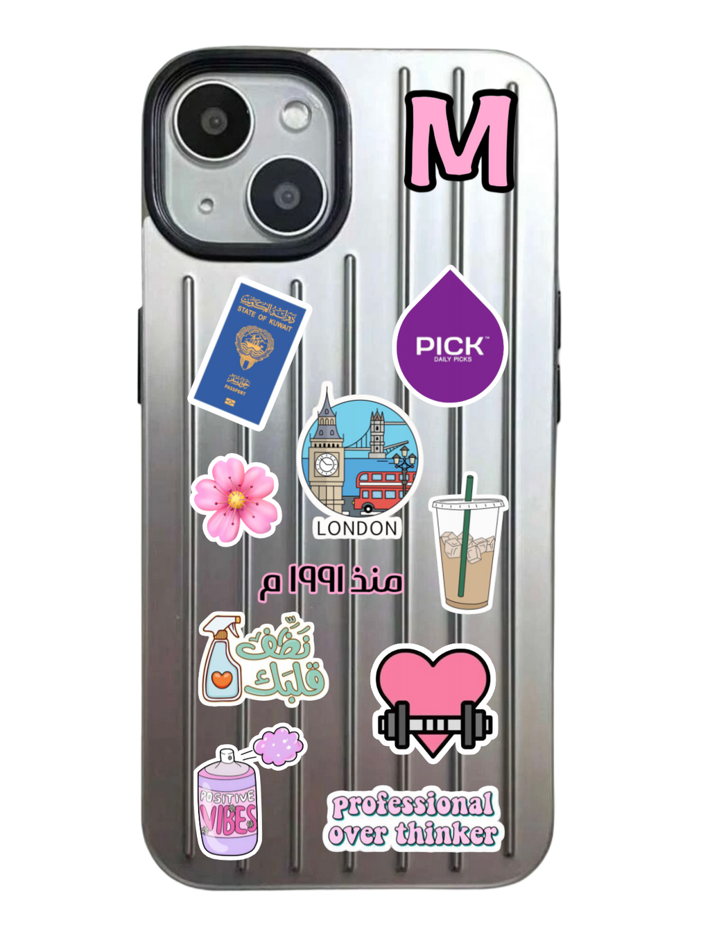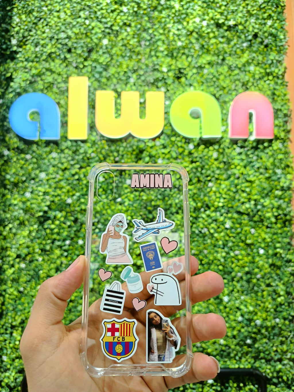 Noufa Silver Phone Case - كفر مع ستيكرز طباعة من اختياركم - الكفر + التصميم + البروفة + الطباعة - سيتم التواصل معكم لتحديد الكلمات والصور