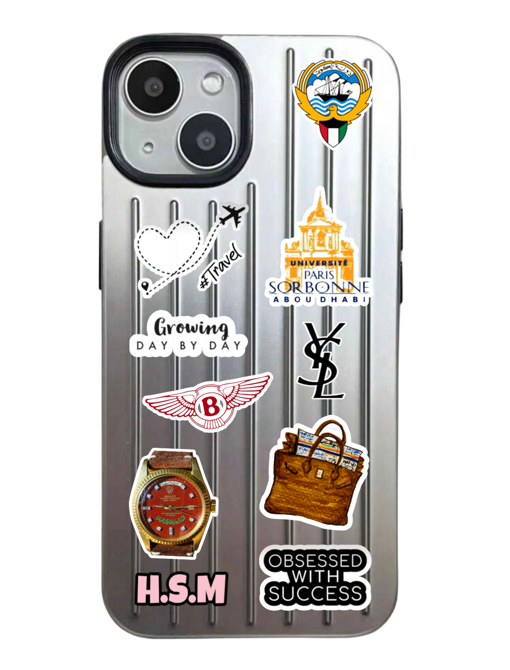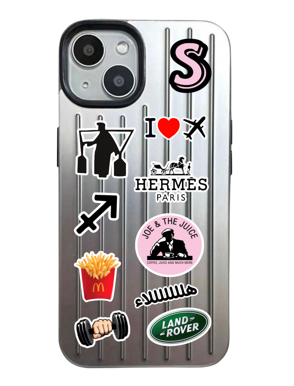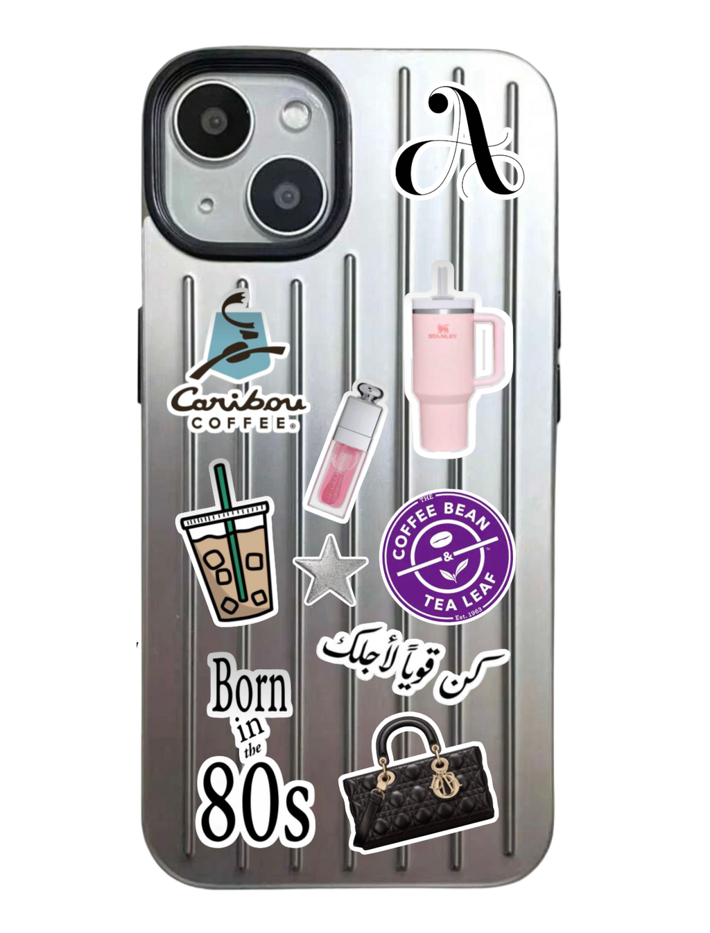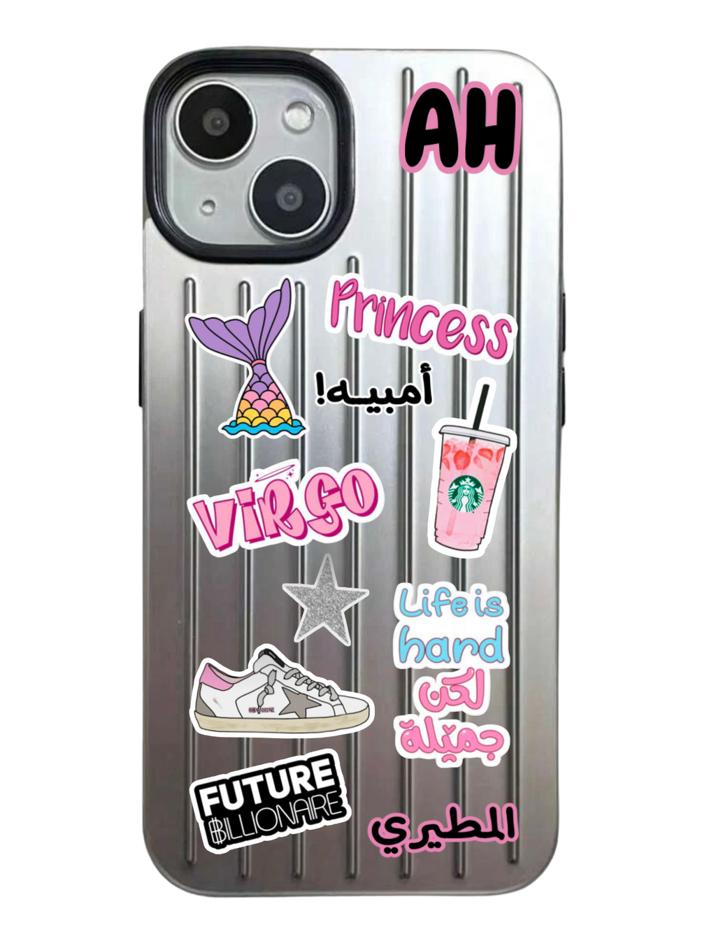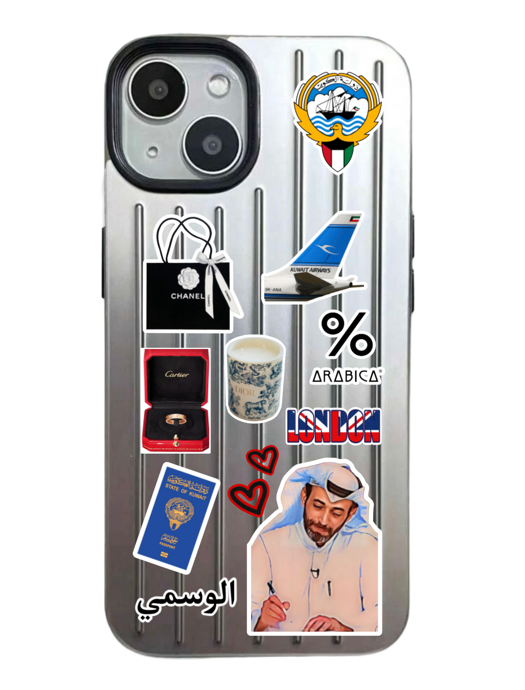 Noufa Silver Phone Case - كفر مع ستيكرز طباعة من اختياركم - الكفر + التصميم + البروفة + الطباعة - سيتم التواصل معكم لتحديد الكلمات والصور