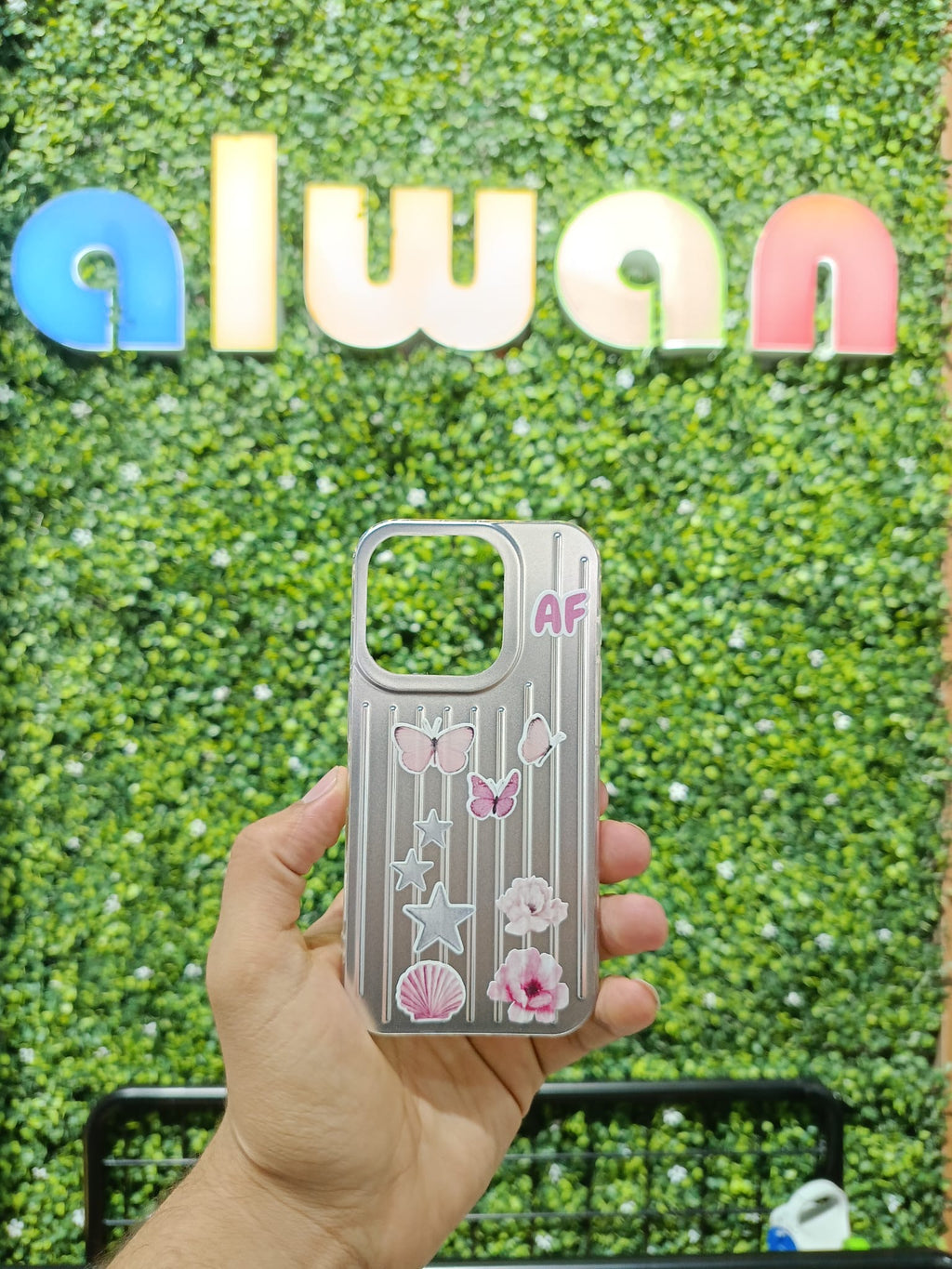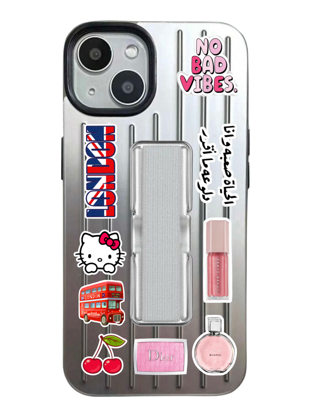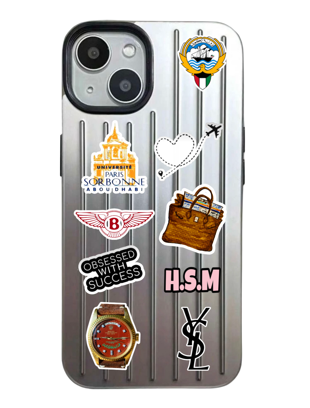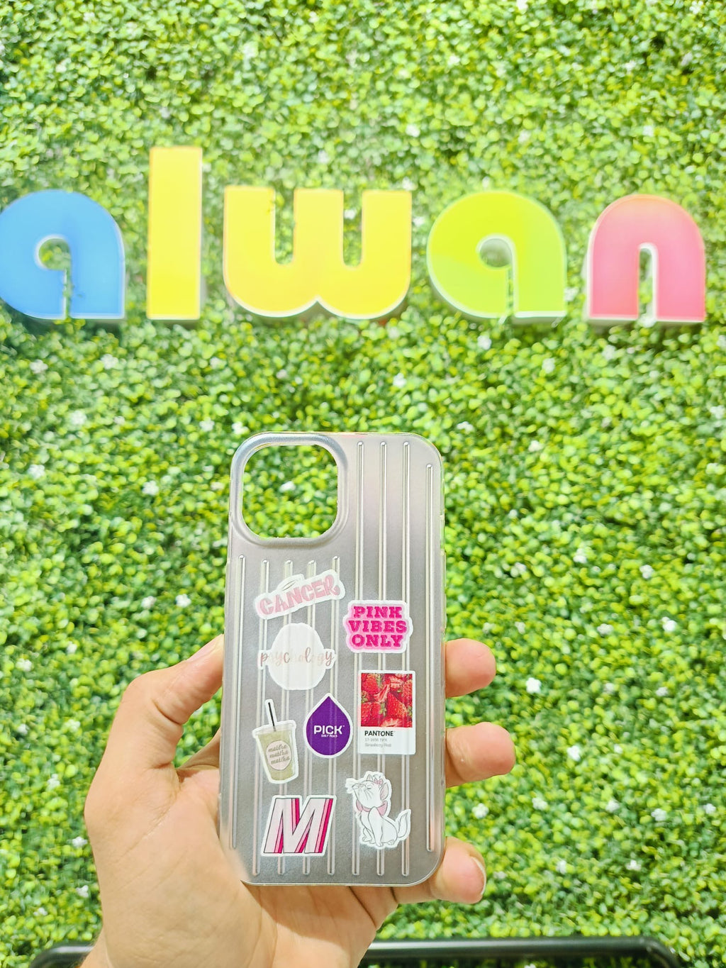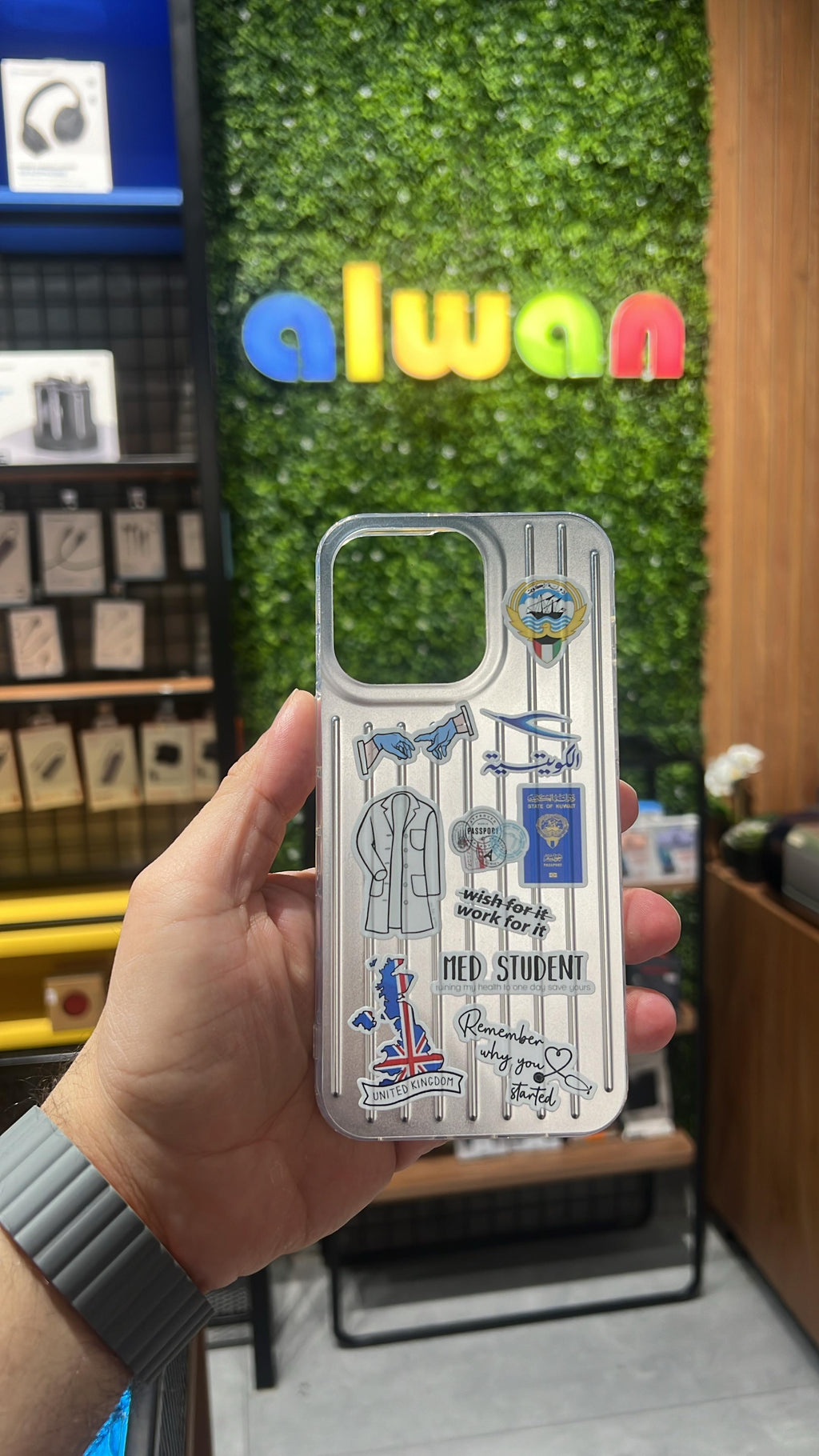 Noufa Silver Phone Case - كفر مع ستيكرز طباعة من اختياركم - الكفر + التصميم + البروفة + الطباعة - سيتم التواصل معكم لتحديد الكلمات والصور