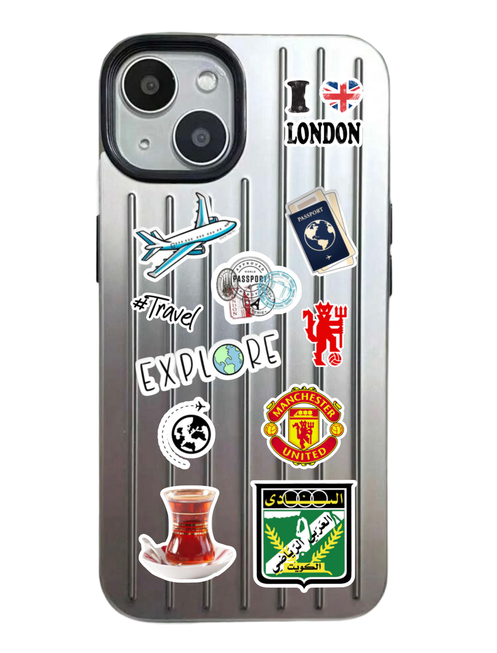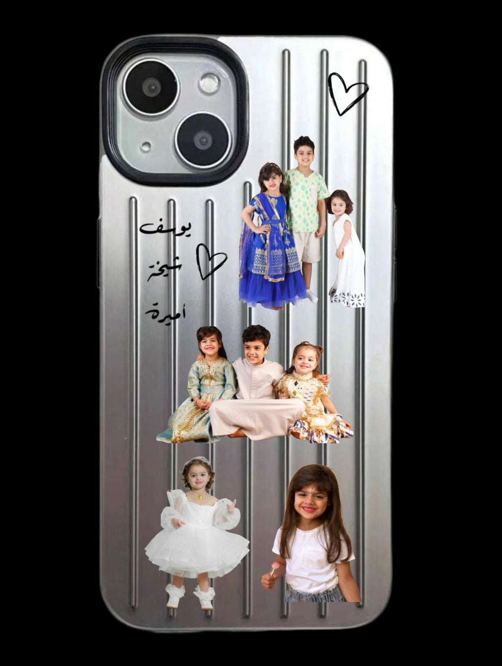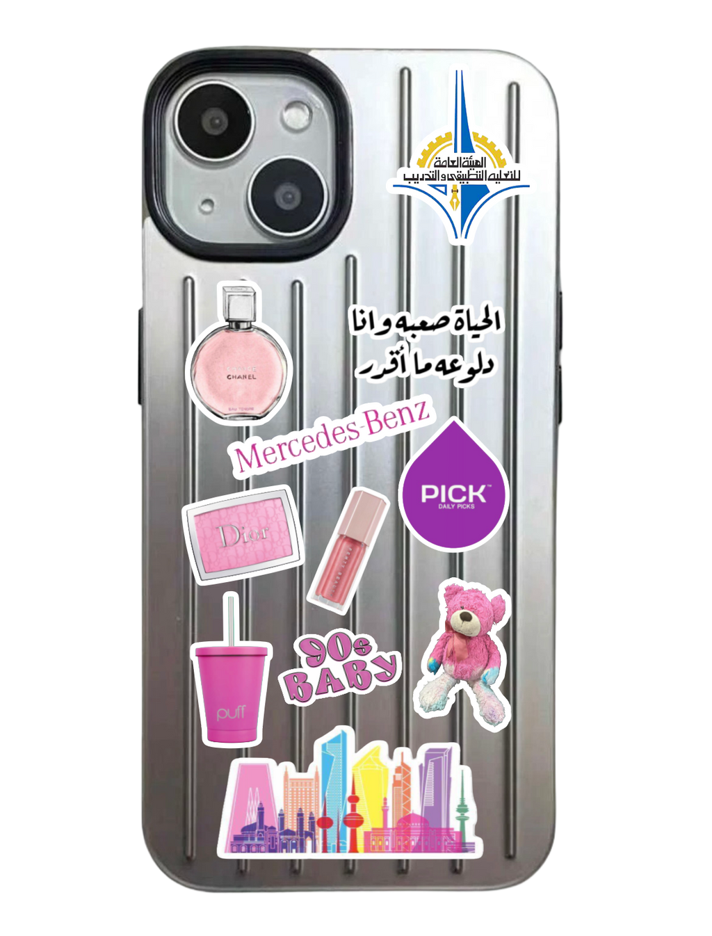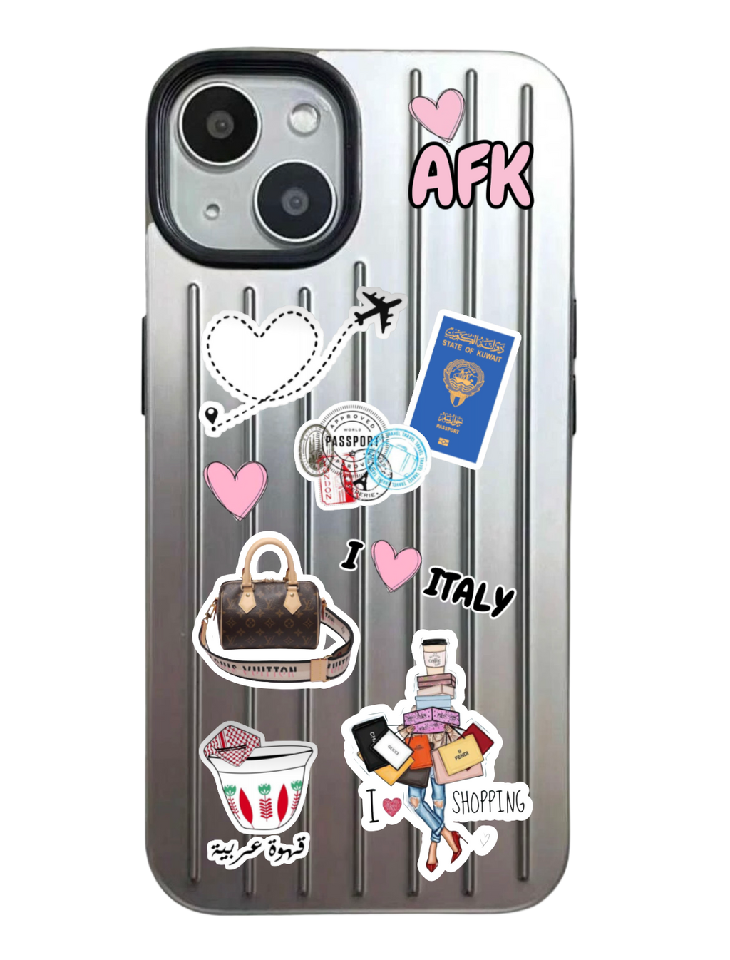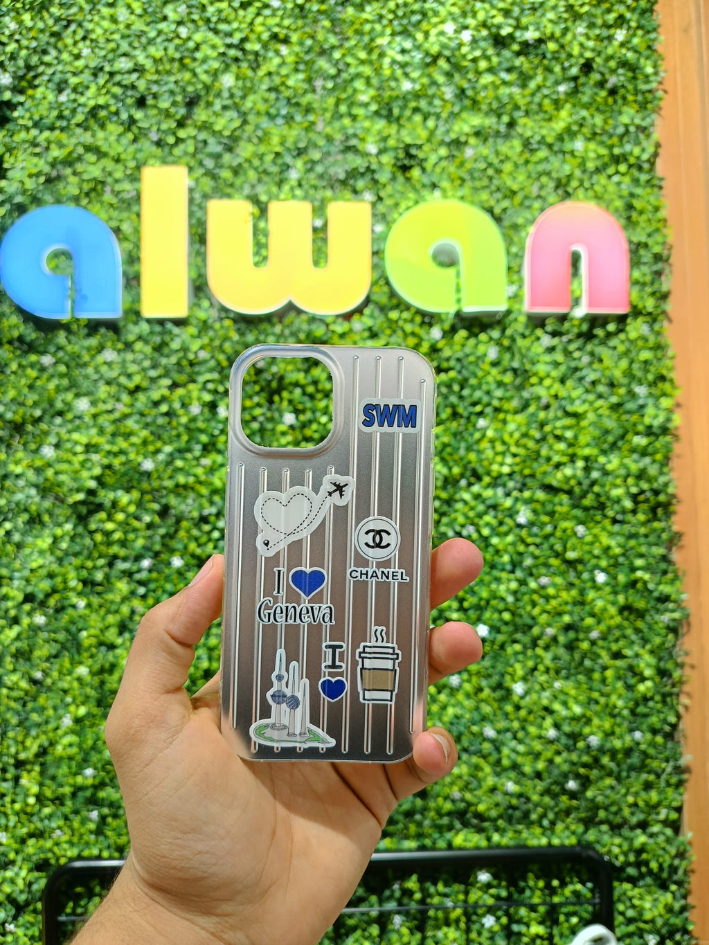 Noufa Silver Phone Case - كفر مع ستيكرز طباعة من اختياركم - الكفر + التصميم + البروفة + الطباعة - سيتم التواصل معكم لتحديد الكلمات والصور