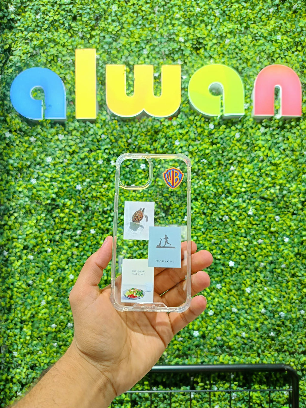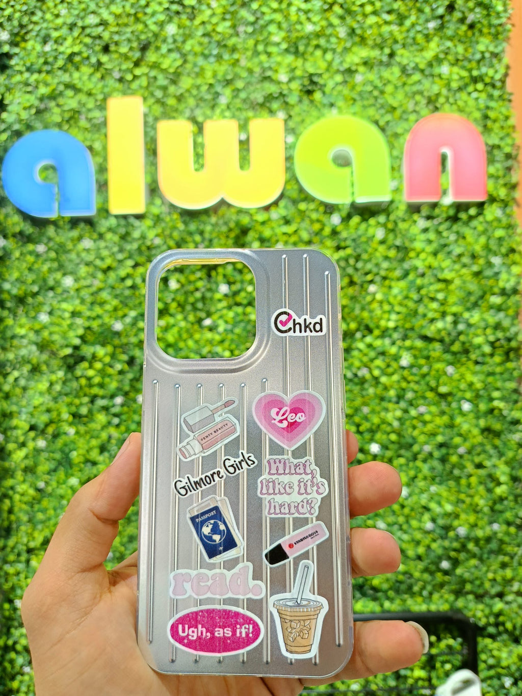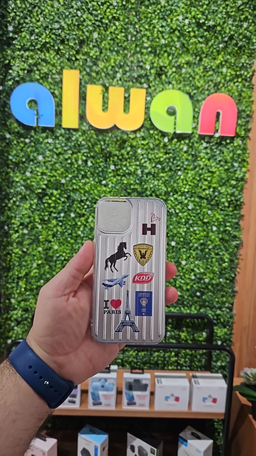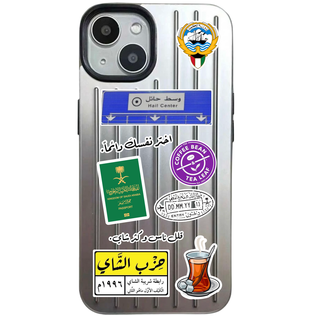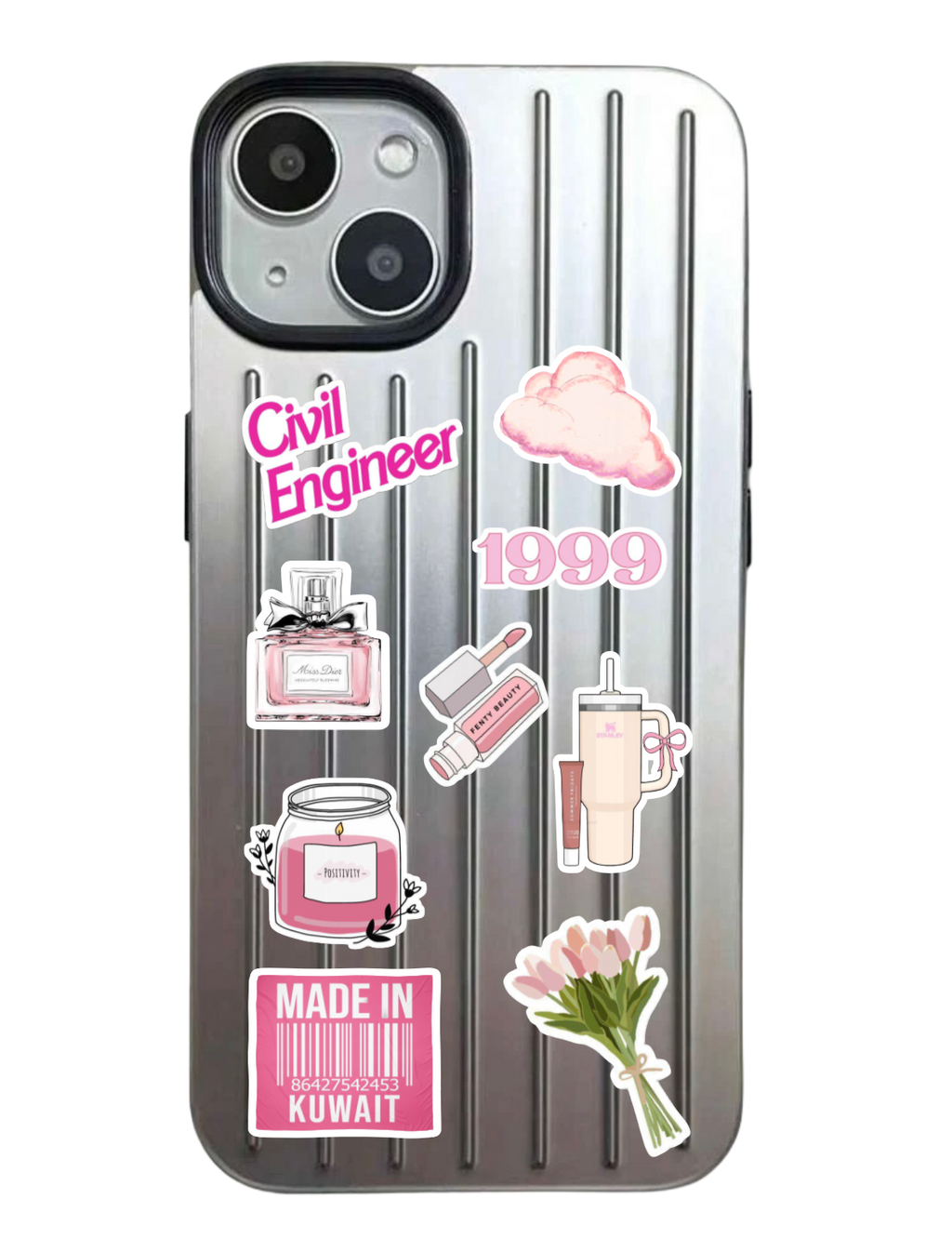 Noufa Silver Phone Case - كفر مع ستيكرز طباعة من اختياركم - الكفر + التصميم + البروفة + الطباعة - سيتم التواصل معكم لتحديد الكلمات والصور