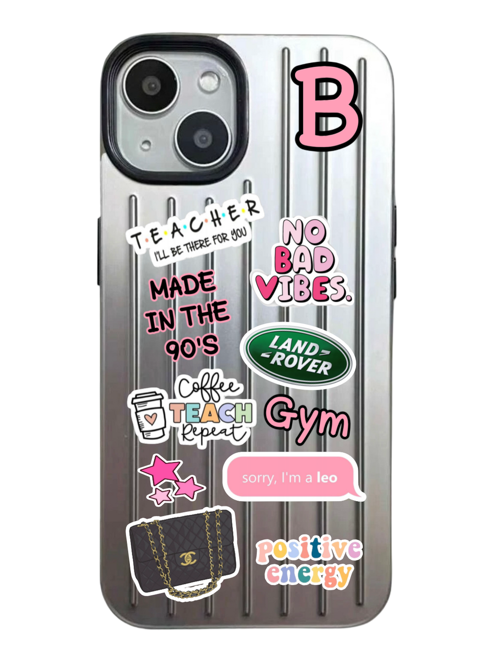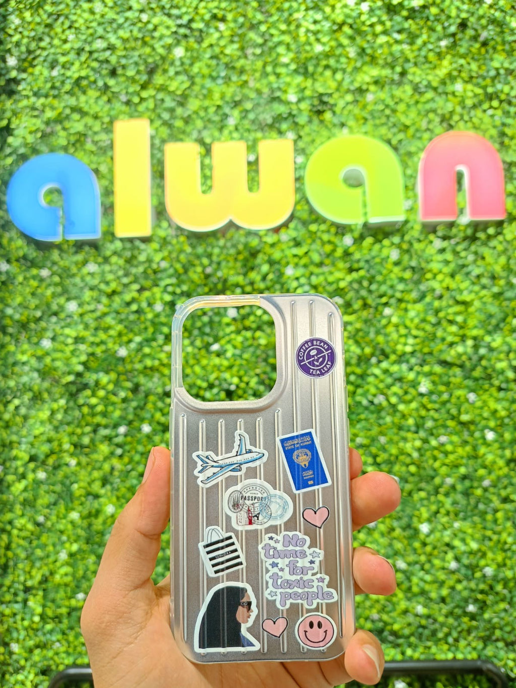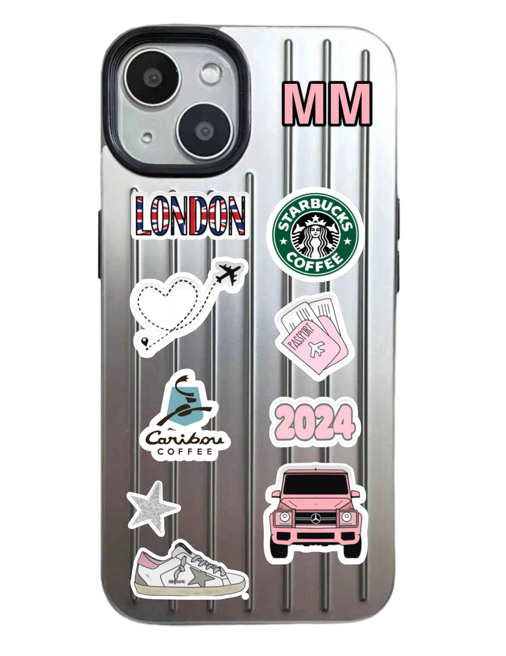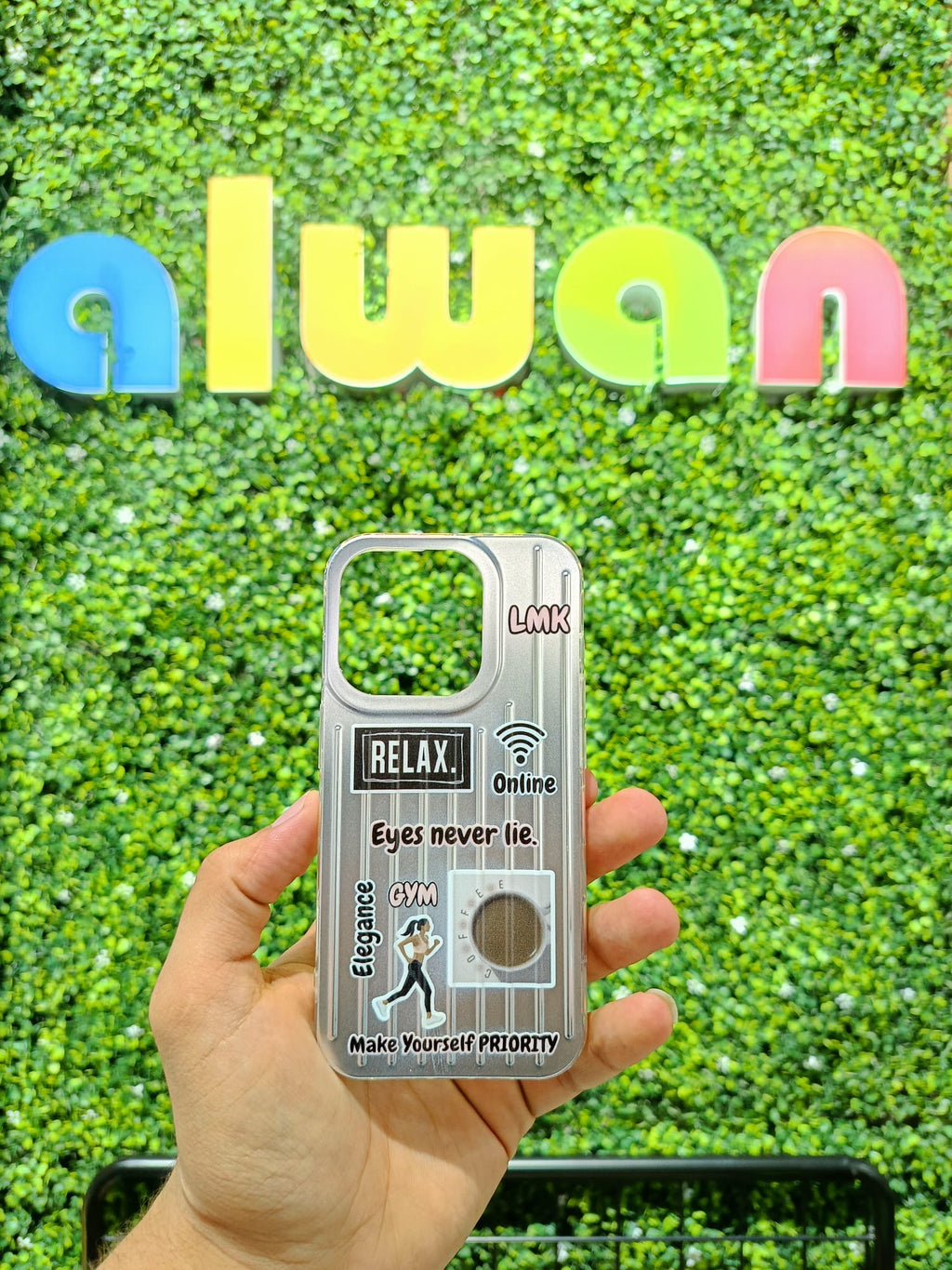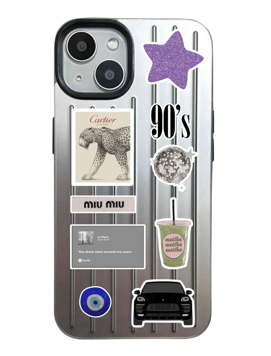 Noufa Silver Phone Case - كفر مع ستيكرز طباعة من اختياركم - الكفر + التصميم + البروفة + الطباعة - سيتم التواصل معكم لتحديد الكلمات والصور