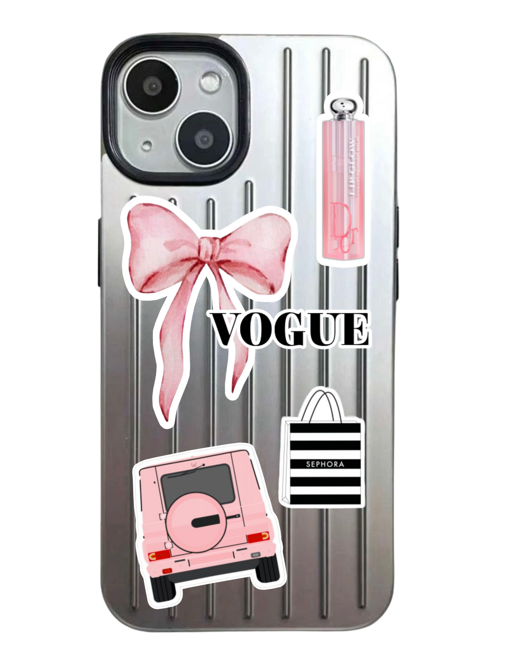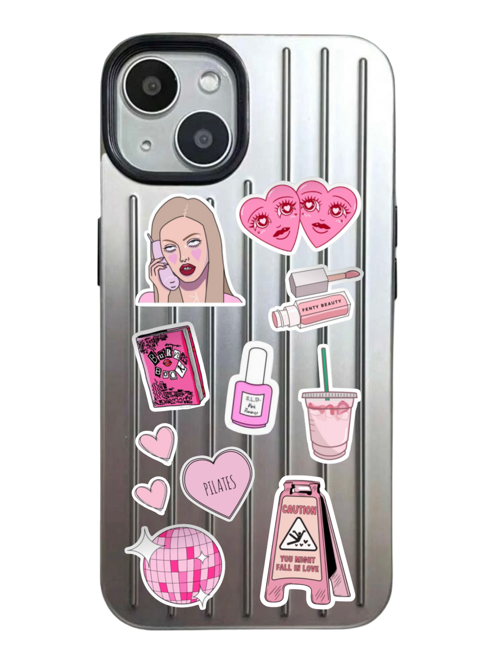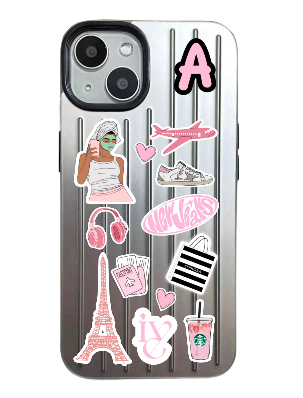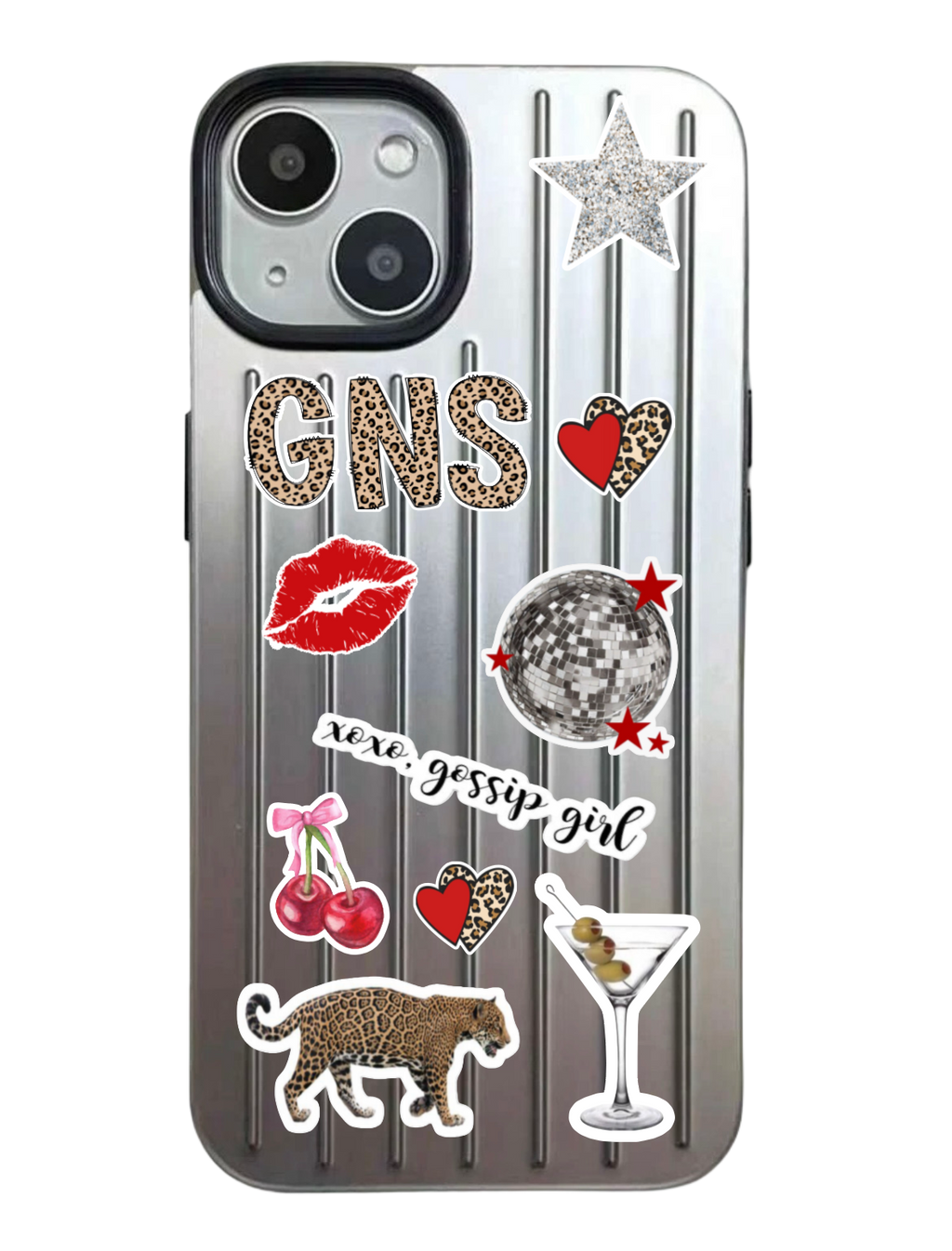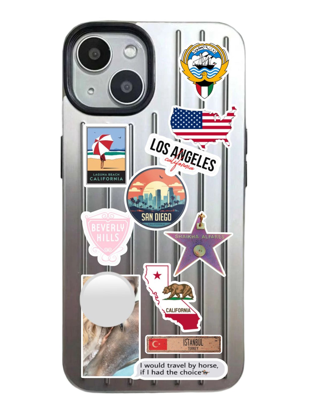 Noufa Silver Phone Case - كفر مع ستيكرز طباعة من اختياركم - الكفر + التصميم + البروفة + الطباعة - سيتم التواصل معكم لتحديد الكلمات والصور