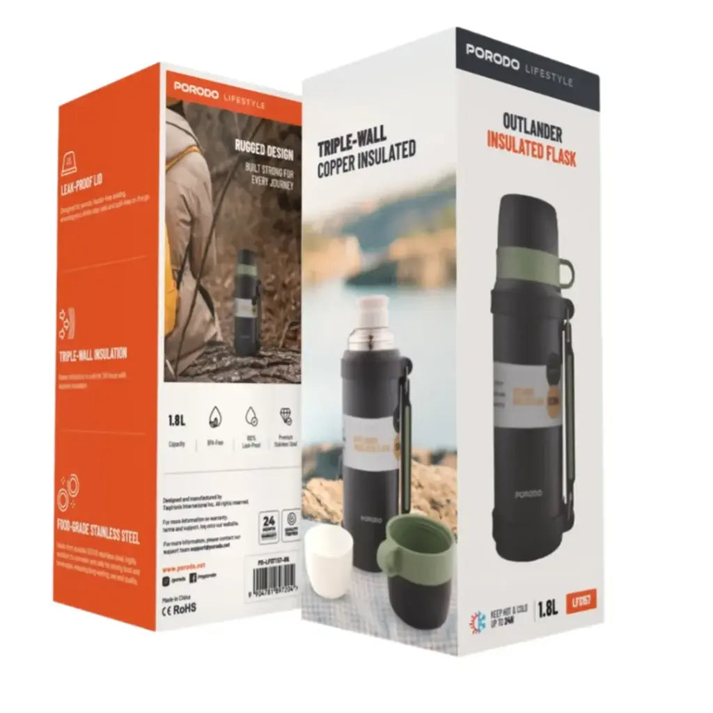 Porodo Lifestyle Insulation Flask 1.8L - Black [O] - مطارة - مقاومه للكسر - برودو