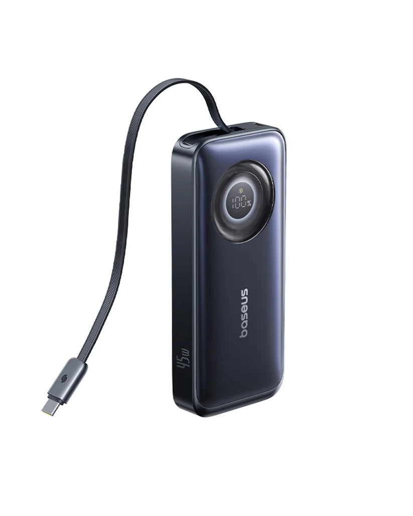 Baseus EnerCore CR11 Power Bank 10000mAh 45W with Retractable Cable [D] بطارية متنقلة - بيسوس - سعة 10000 - عدد 1 سلك شاحن تايب سي - شاشة رقميه - قوة 45 واط - كفالة 24 شهر