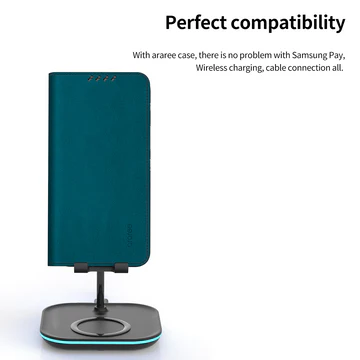 ARAREE MUSTANG DIARY WALLET CASE For SAMSUNG GALAXY S24 ULTRA - ASH BLUE [A] - S24 كفر سامسونج - حماية عالية مع بوك - ألتر