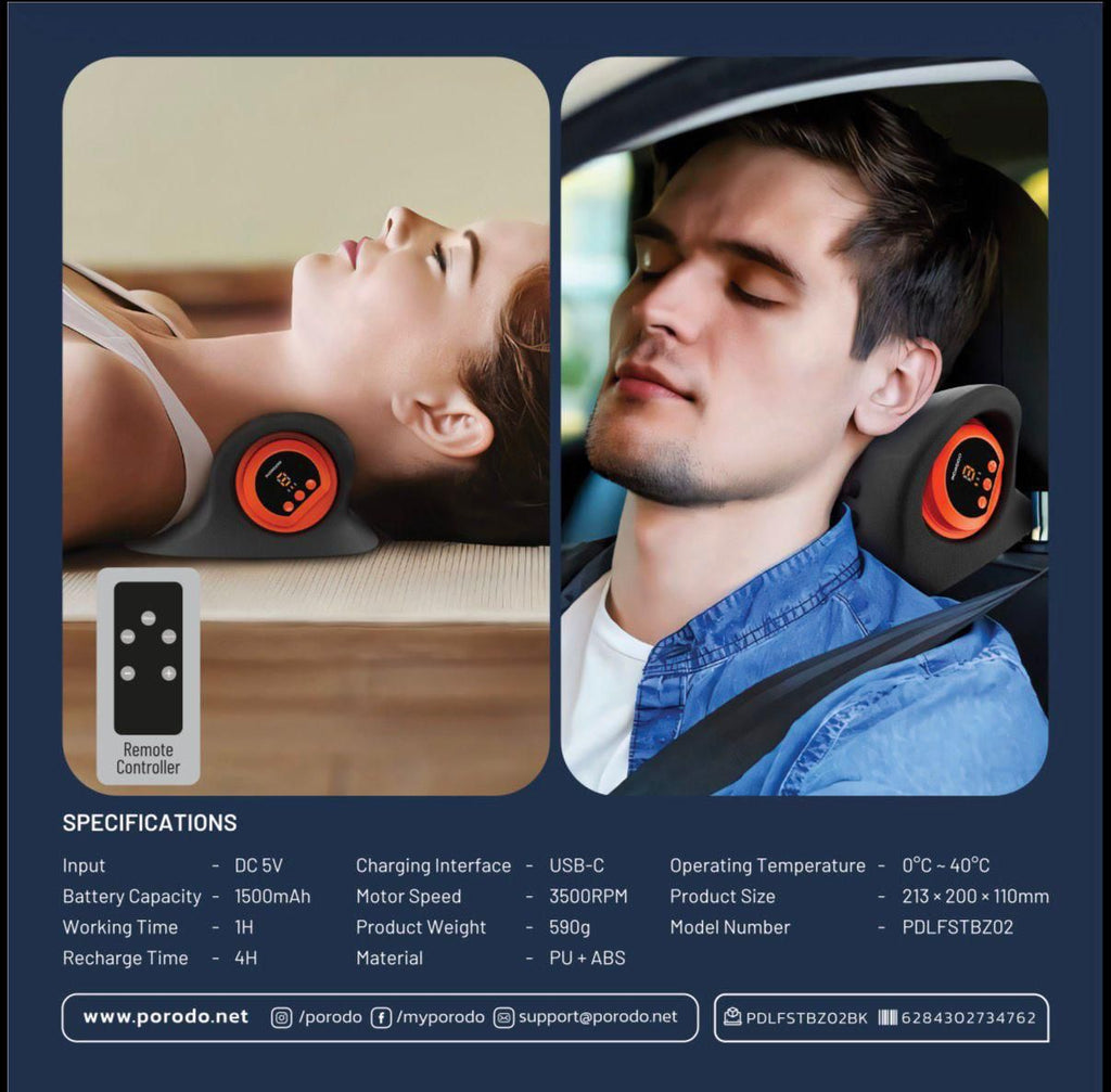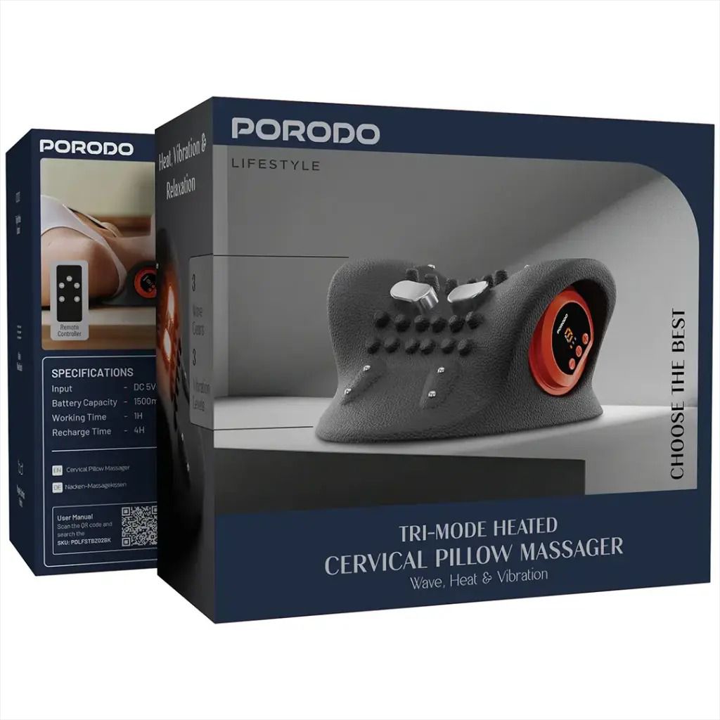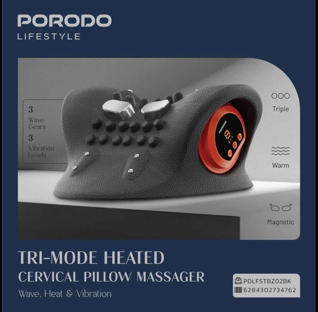 Porodo Lifestyle Tri-Mode Heated Cervical Pillow Massager Wave, Heat & Vibration [O] - مخدة مساج - ذكية من بورودو لايف ستايل - كفالة 24 شهر