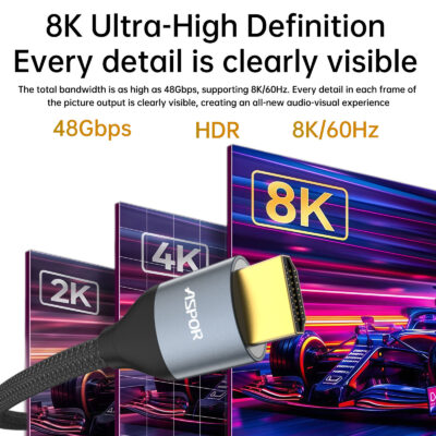 Aspor A270 Hot Latest Hdmi 8k 60hz Resolution High Speed Dynamic HDR EARC VRR - كيبل تلفزيون - متوفر بطول 1 متر\2\3\5 متر