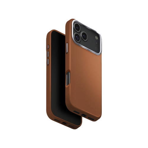 Slim premium vegan leather case for enhanced edge-to-edge protection with subtle details and sleek finishing. Features an aluminum camera lens bezel and side buttons to shield against harsh knocks and impacts. Includes a precise cut-out for easy access to the additional capture button, enhancing usability. Completed with a smooth high-quality inner microfiber lining that prevents scratches and acts as an extra layer of shock absorption. Designed with MagClick™ for magnetic wireless charging compatibility. Tested to withstand drops of up to 8 feet (2.5 meters).