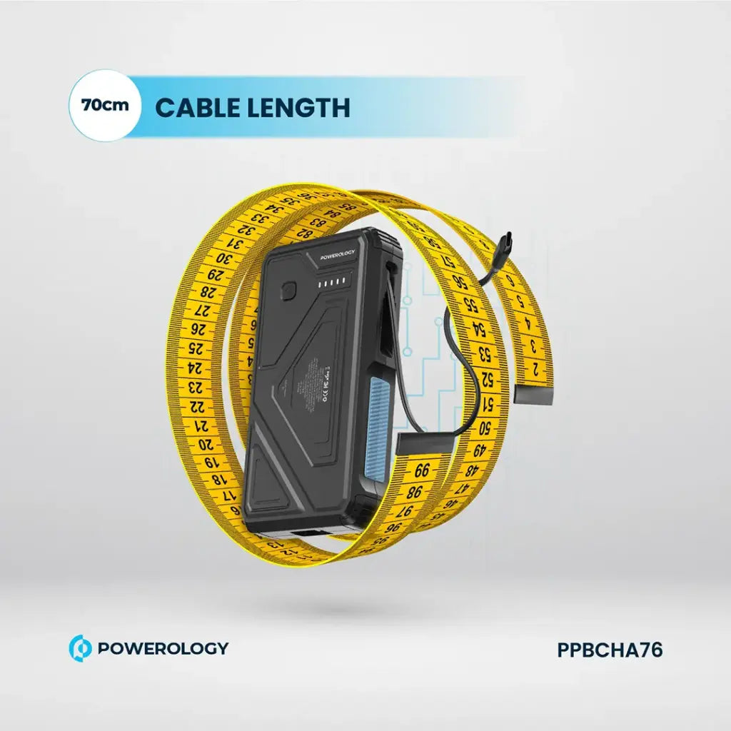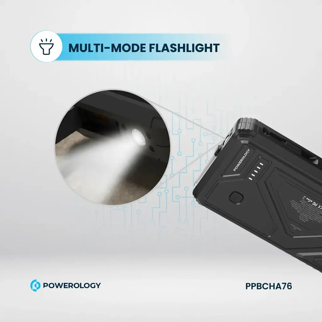 Powerology 20000mAh Solar Wireless Charging Power Bank - Black [O] - بطارية متنقلة - باورولجي - سعة 20 آلاف ملي امبير - فلاش مضيئ - مع سلك شاحن تايب سي - قوة 20 واط - شحن لاسلكي بقوة 15 واط - كفالة 18 شهر