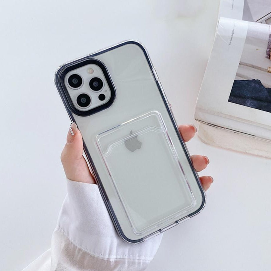 Black Card Slot Phone Case - كفر شفاف مع مكان للبطاقات