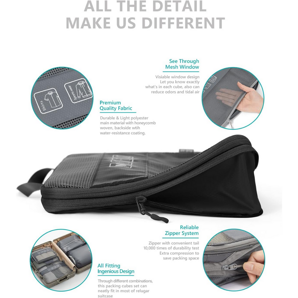 Travelest 5-Piece Compression Packing Cubes Set [T] - مجموعة منظمات السفر القابلة للضغط (5 قطع) من ترافيليست